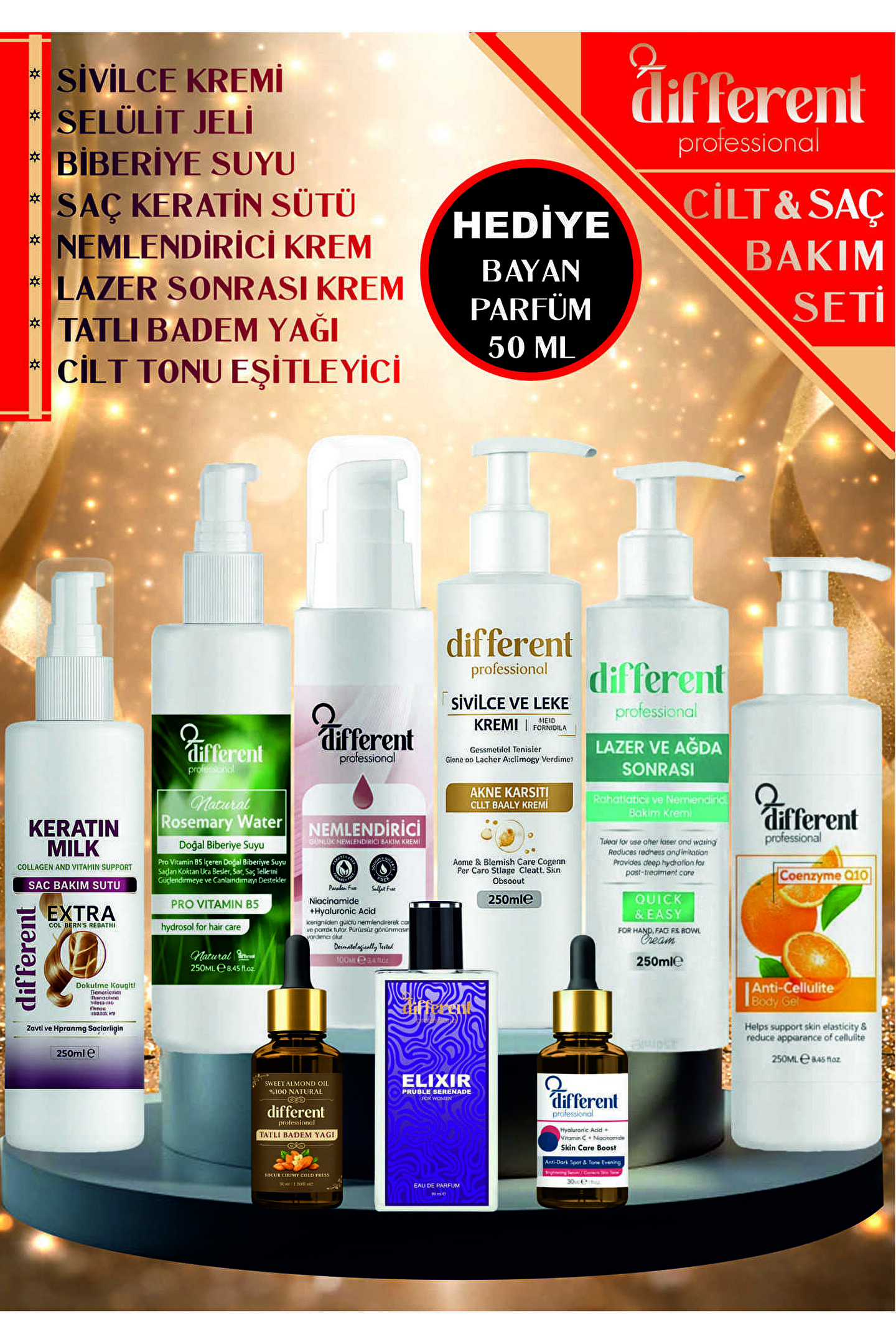 DİFFERENT PROFESİONAL CİLT VE SAÇ BAKIM SETİ 9 ÜRÜN - PARFÜM HEDİYELİ
