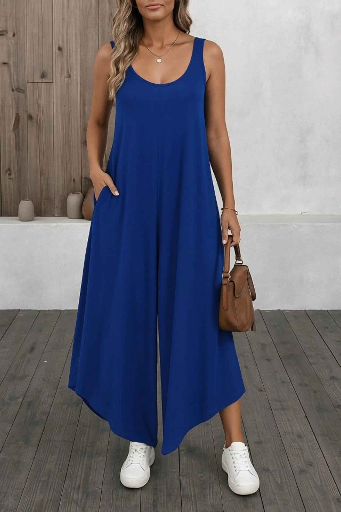 dilmex Kadın Askılı Yuvarlak Yaka Cepli Salaş Uzun Viskon Tulum