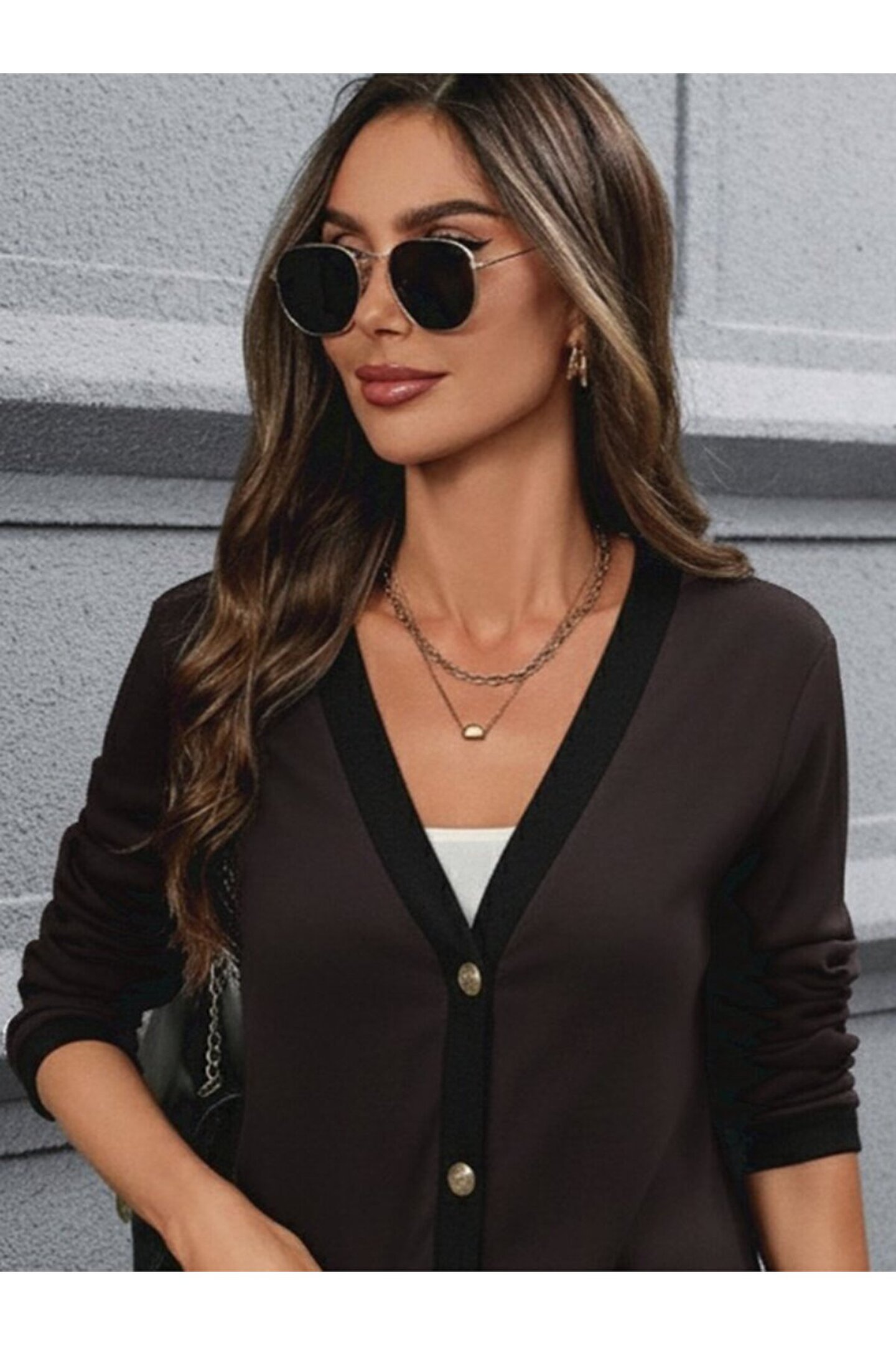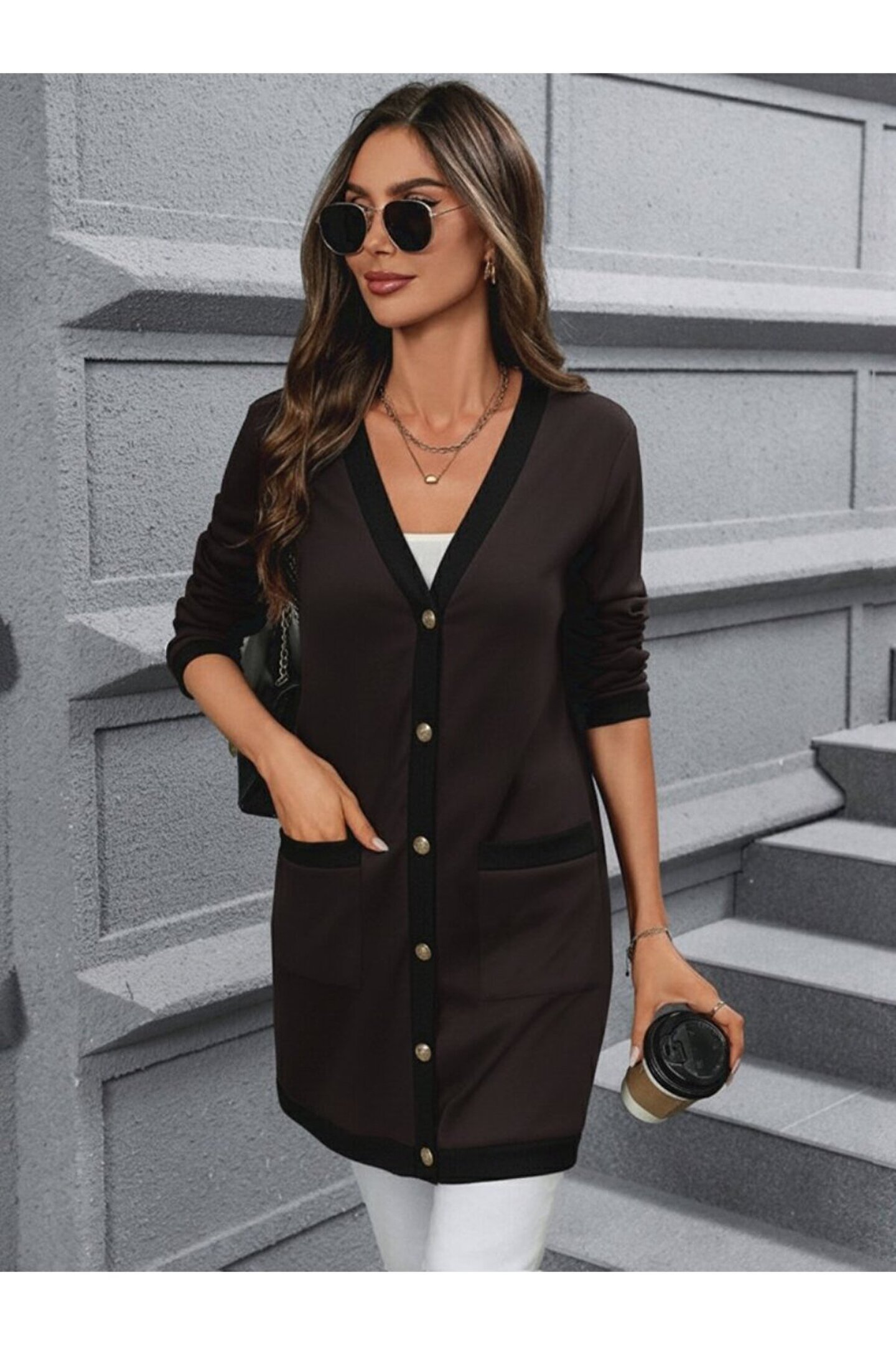 dilmex Kadın Uzun Kollu Cepli önden Düğmeli Uzun Modal Ceket Hırka