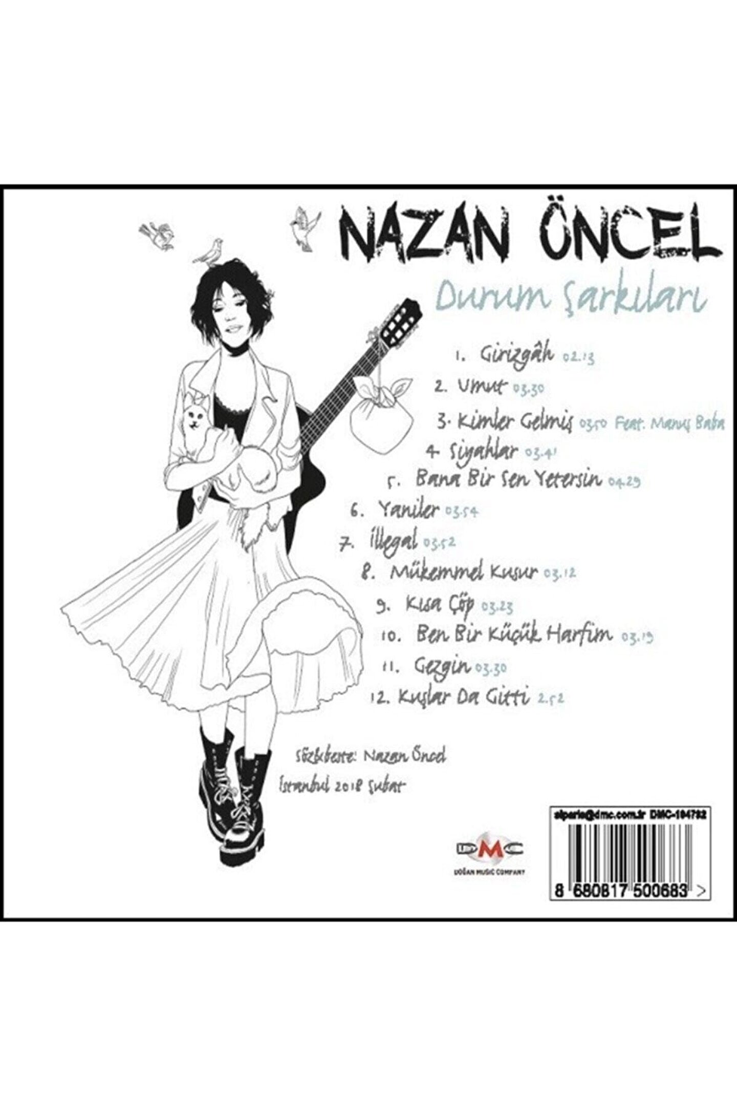 Parça Listesi 1; Girizgah 2; Umut 3; Kimler Gelmiş Feat; Manuş Baba 4; Siyahlar 5; Bana Bir Sen Yetersin 6; Yaniler 7; İllegal 8; Mükemmel Kusur 9; Kısa Çöp 10; Ben Bir Küçük Harfim 11; Gezgin 12; Kuşlar Da Gitti Yazar: Yayınevi:DMC ;