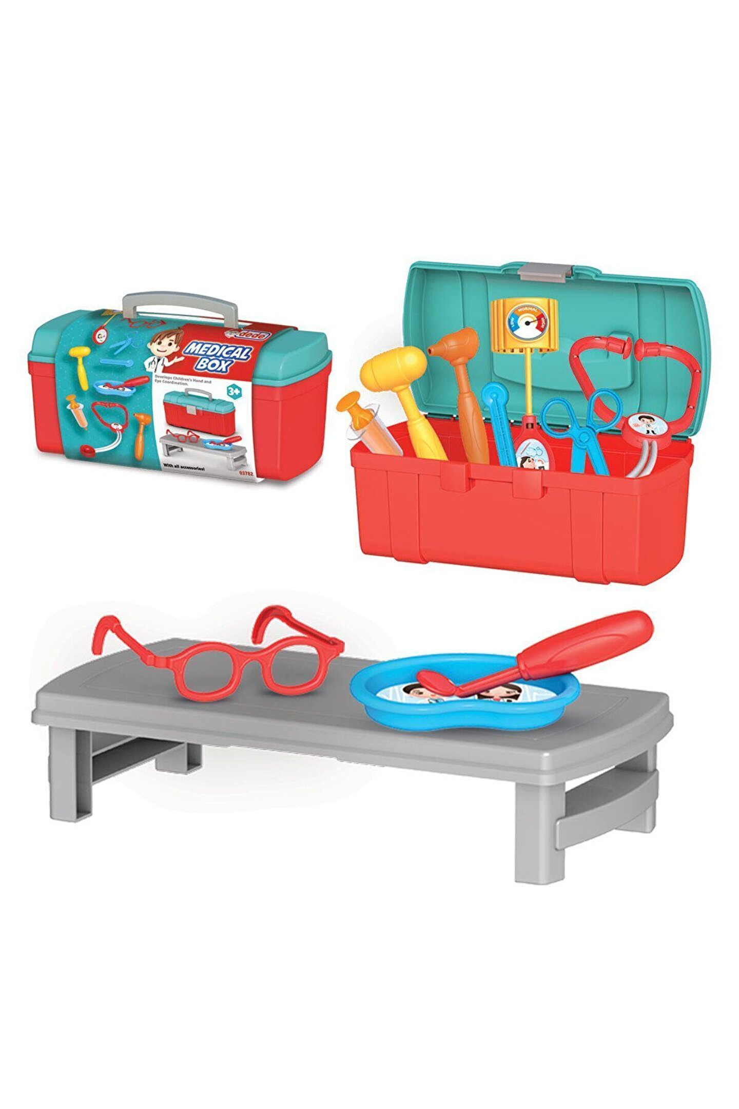 3 yaş ve üzeri çocuklar için ideal, eğlenceli ve eğitici bir oyuncak seti; Çocukların doktorluk mesleğini keşfetmelerine olanak tanıyan, hayal güçlerini geliştiren bir oyuncak; Gerçekçi dokunuşlar ve detaylar ile donatılmış, gerçekçi bir doktor seti deneyimi sunar; Hemşirelik ve doktorluk rollerini canlandırmak için mükemmel bir araç, çocukların rol yapma becerilerini geliştirir; Acil durum senaryolarını canlandırmak için ideal, çocukların yaratıcılıklarını teşvik eder;