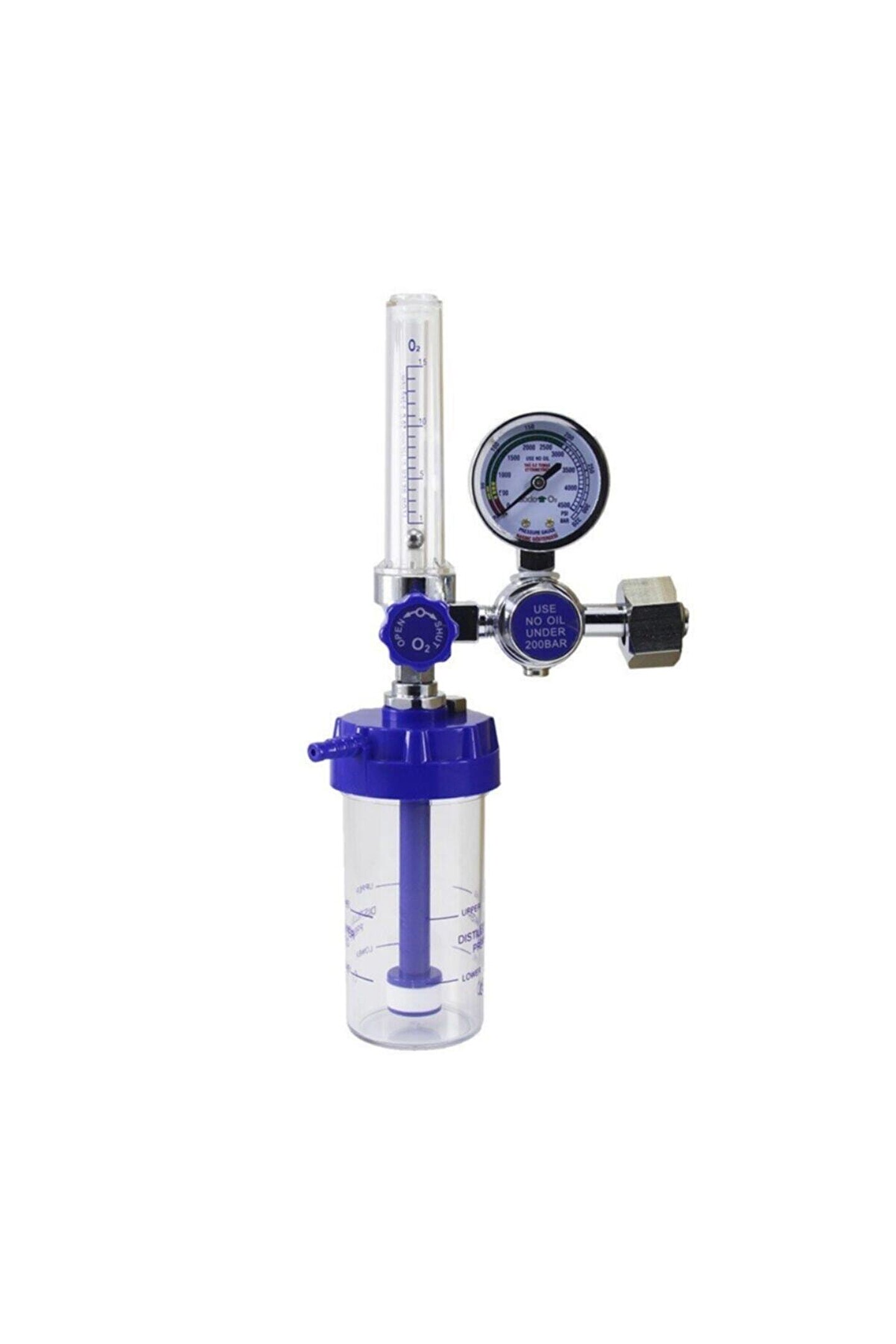 Oksijen terapi cihazı, oksijene ihtiyaç duyan hastalar için, tüpteki oksijen gazının basıncını düşürerek ve oksijeni nemlendirerek hastaya verilebilecek düzeye getirir. ; Şeffaf nemlendirici kap sayesinde su seviyesi izlenebilir. ; Basınç Aralığı: 2-3 bar. ; Güvenlik Valfi Kontrol Basıncı : 3,5 bar (+/- 0,5 bar ). ; Ayarlanabilir Akış Aralığı: 1 - 15 lt/dk. ; Tüpteki oksijen gazını izleme olanağı. ; Cihaz içerisinde koruyucu filtre. ; Nemlendirici çerisinde koruyucu filtre. ; Nemlendirici Kabı Su Hacmi: 150 ml. ; Yıkanabilir ve pozisyon ayarlı , darbelere dayanıklı oksijen nemlendiricisi. ; Komple kromajlı hassas akış ölçer. ; Polikarbonat camlı, patlama emniyetli, kromajlı 50 m çapında rahat görülebilen oksijen manometresi.;