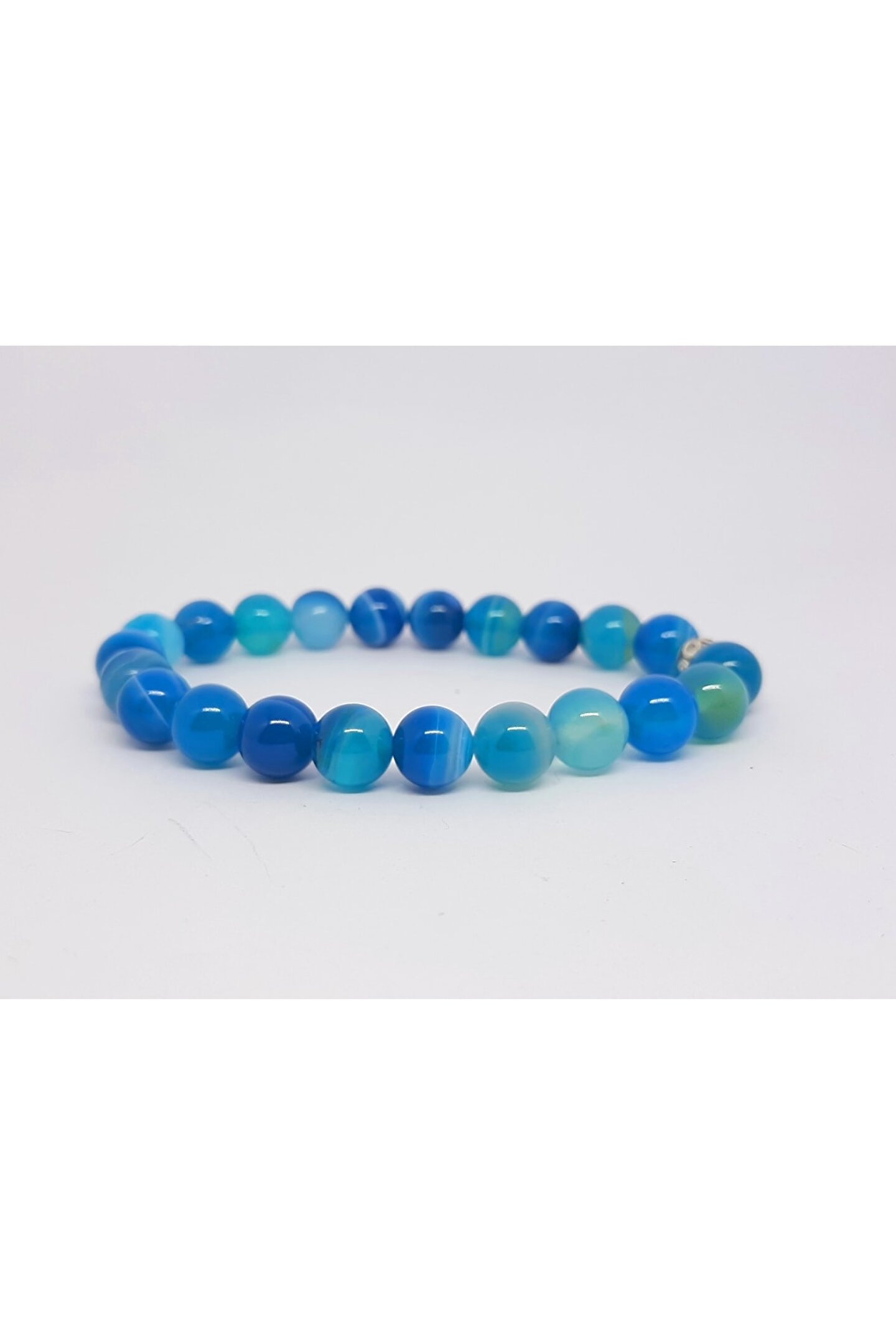 Doğal akik taşı kullanılarak üretilmiş, şıklığı ve zarafeti bileğinizde hissedin; Mavi akik taşı, nazar ve boğaz çakrası olarak bilinen özel bir taştır ve enerjik etkileriyle dikkat çeker; Her bir bileklik, benzersiz desenleriyle göz alıcı bir görünüm sunar ve stilinizi tamamlar; Doğal taş materyali sayesinde her bileklik, doğanın saf güzelliğini ve otantik dokunuşunu yansıtır;