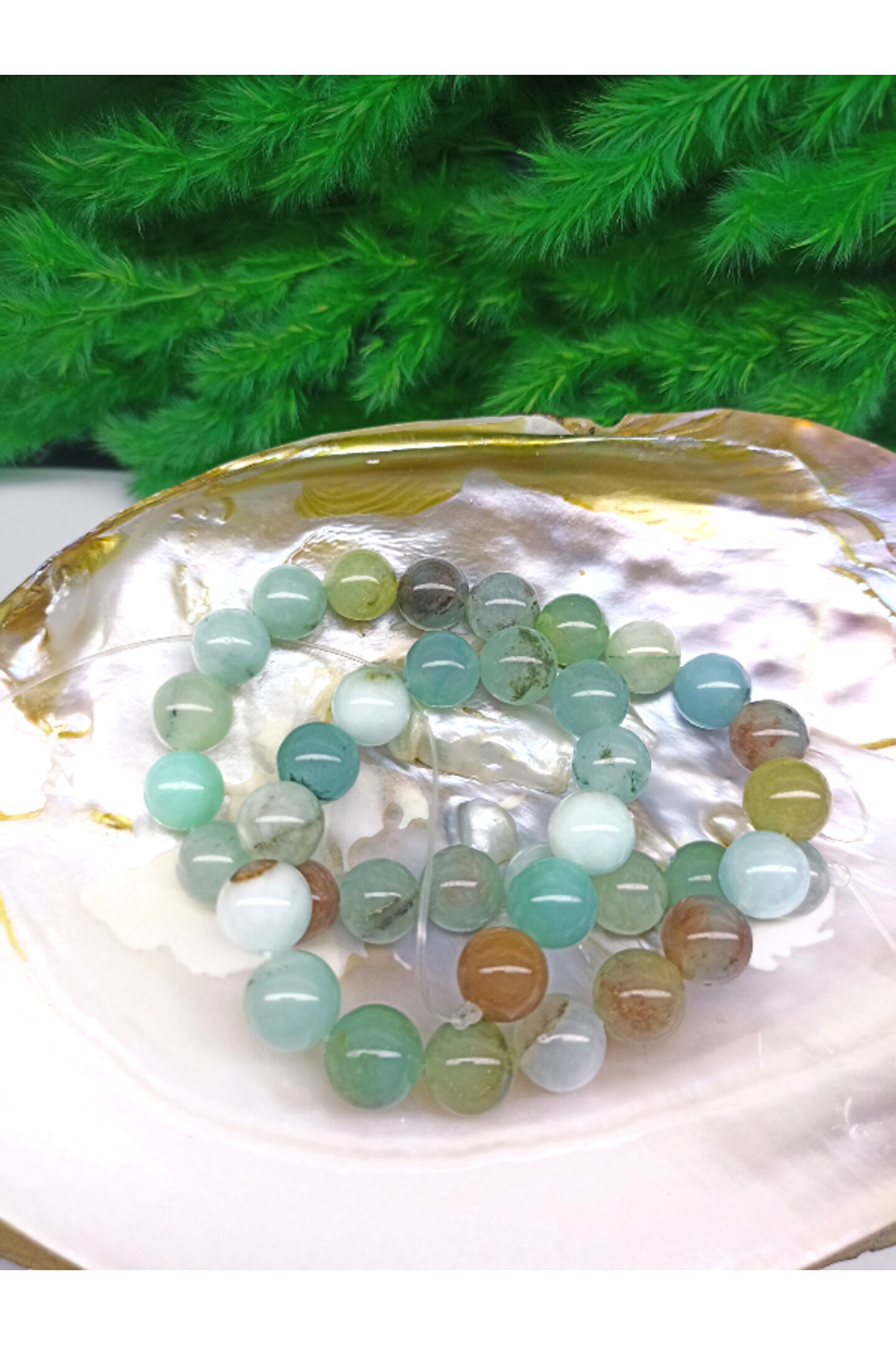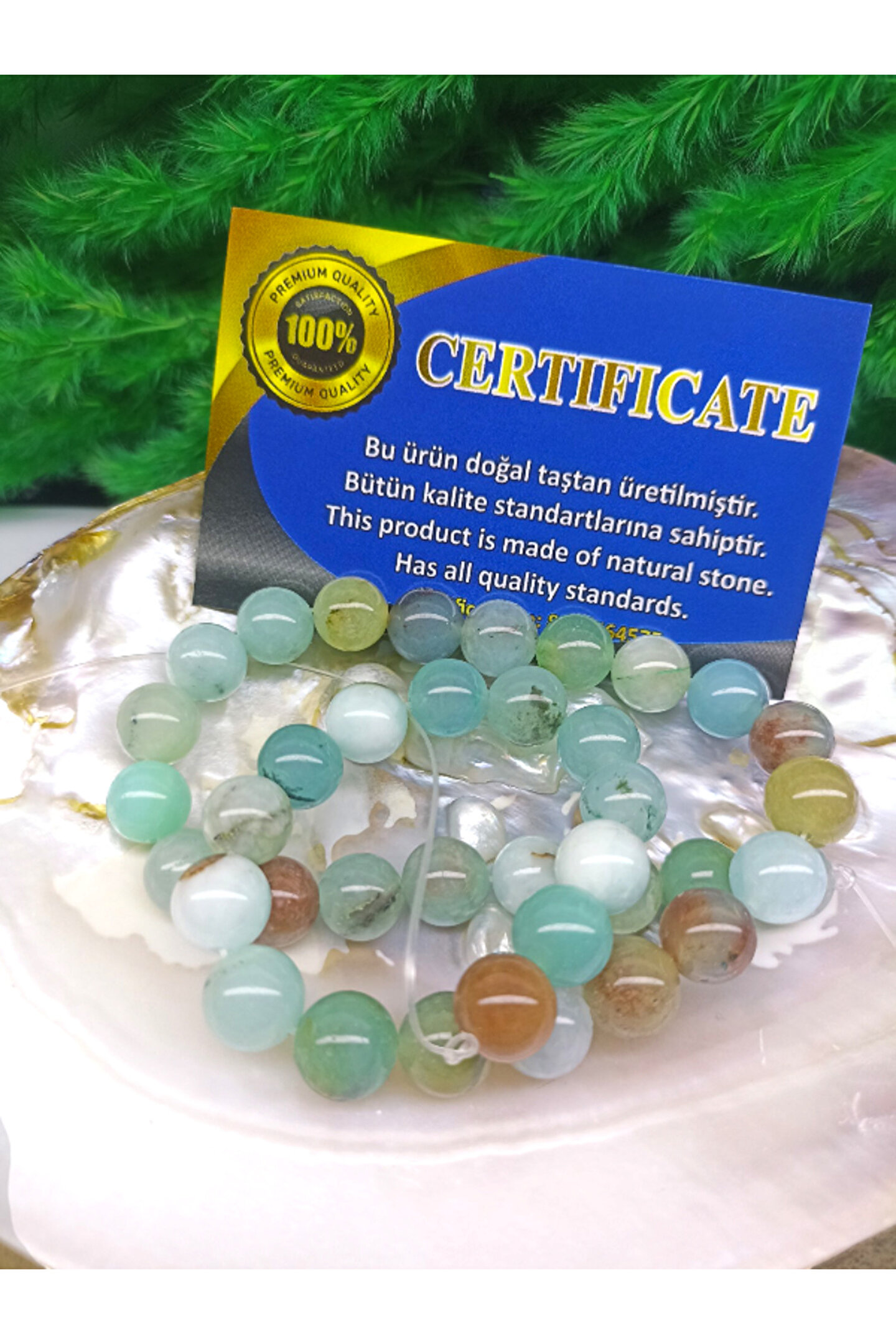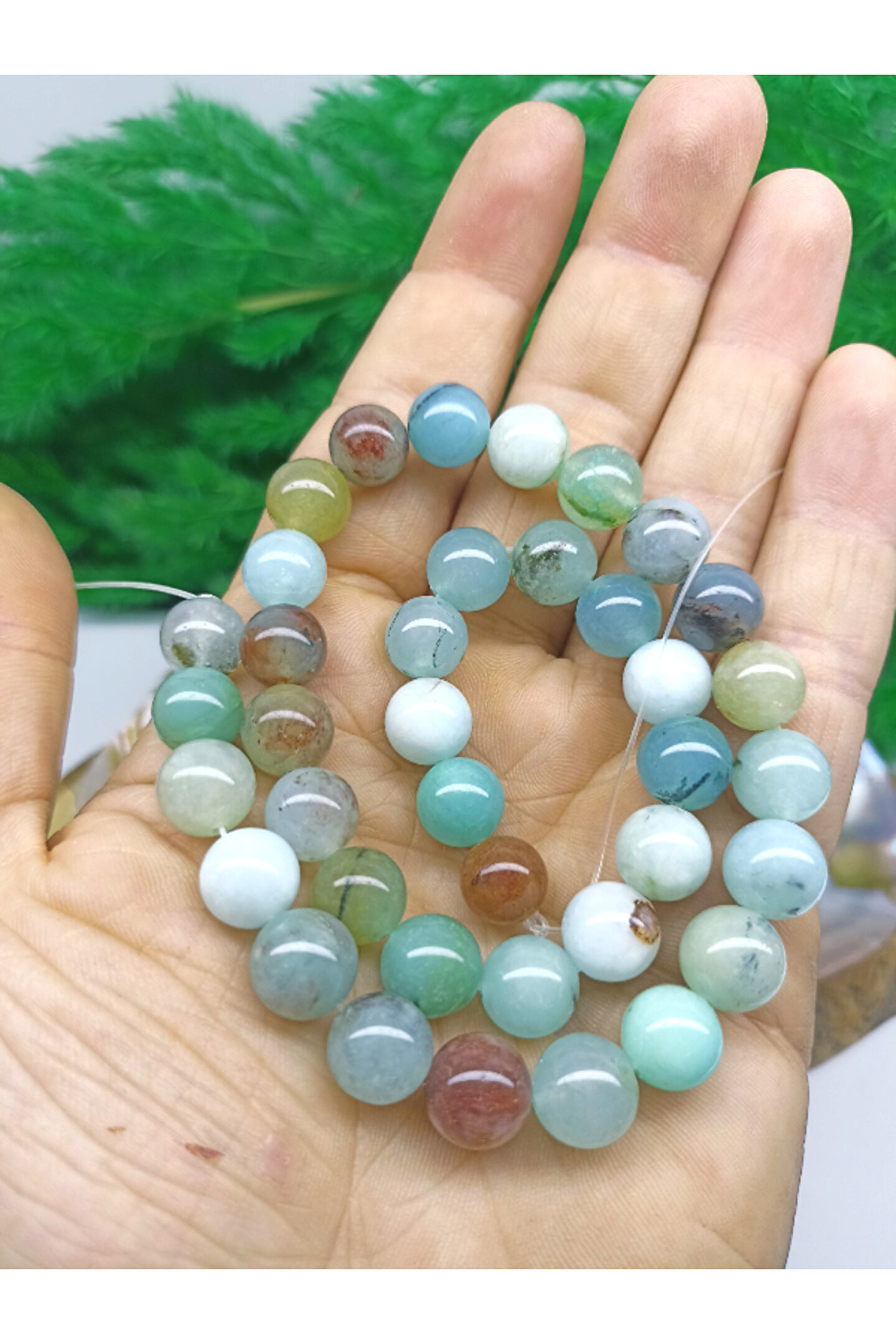 DOĞAL TAŞ CENNETİ 10 MM AMAZONİT DOĞAL TAŞ DİZİ 40 CM UZUNLUĞUNDA (SERTİFİKALI)
