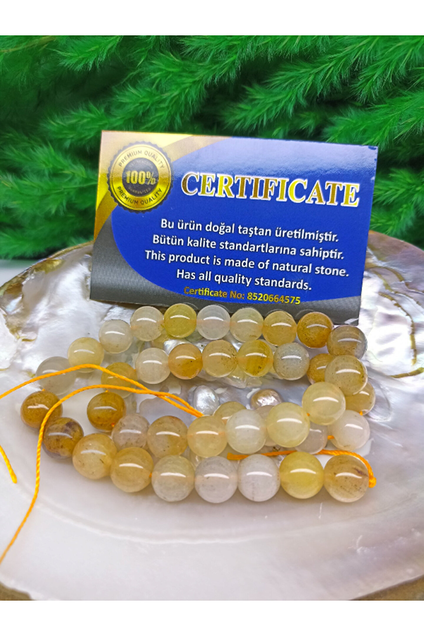DOĞAL TAŞ CENNETİ 10 MM KARPUZ KUVARS DOĞAL TAŞ DİZİ 40 CM UZUNLUĞUNDA (SERTİFİKALI)