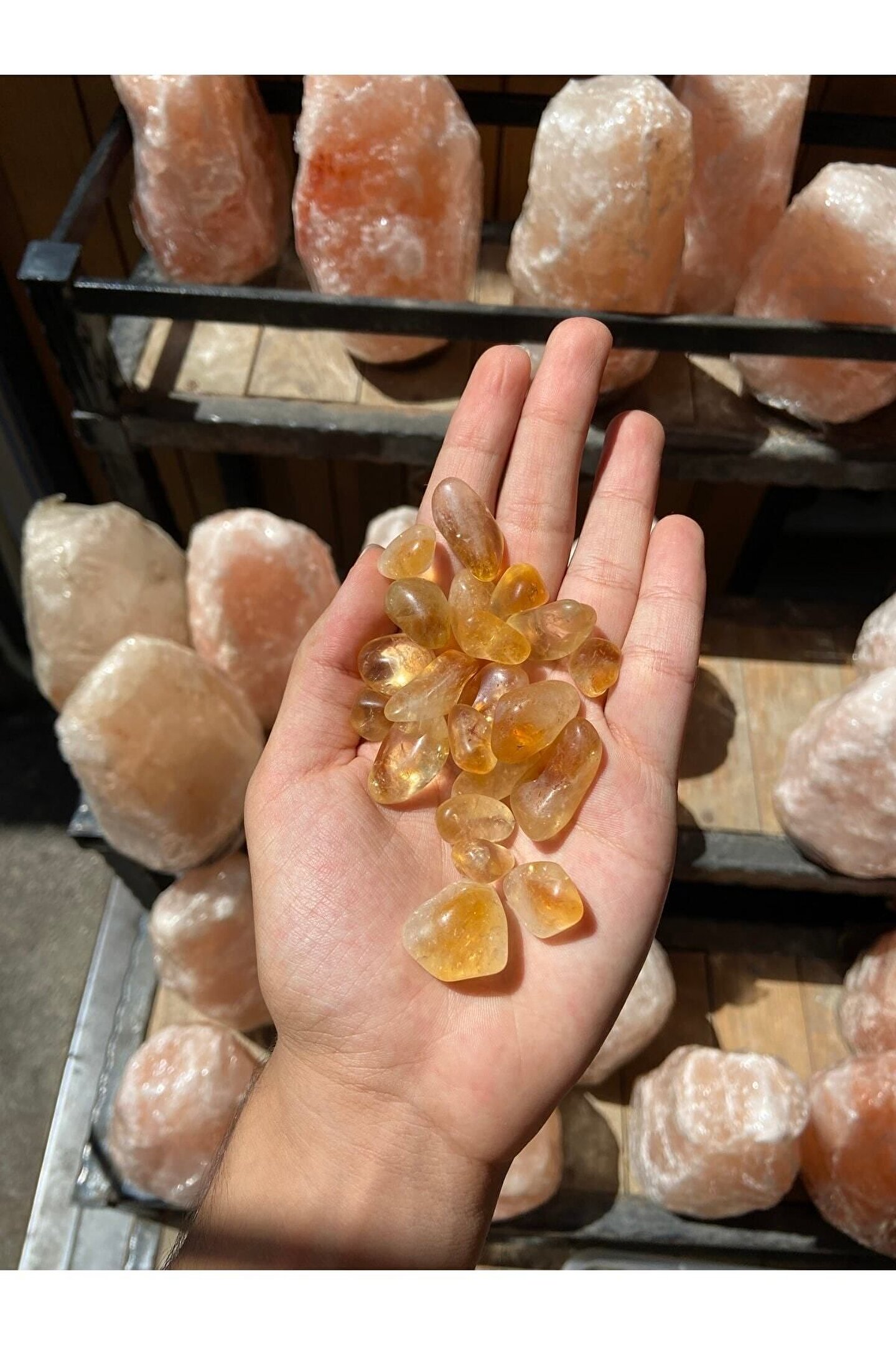 - Doğal sitrin taşı, benzersiz ve estetik bir görünüm sunar; - Her bir parça, doğal dokusuyla dikkat çeker ve dekoratif objelerinize otantik bir hava katar; - 5 adet tamburlanmış sitrin taşı, koleksiyonunuza zenginlik ve çeşitlilik katar; - Bu taşlar, hem kişisel kullanım için idealdir hem de hediye olarak tercih edilebilir; - Dekoratif objelerinizde veya takılarınızda kullanabileceğiniz bu taşlar, şıklığınızı tamamlar;