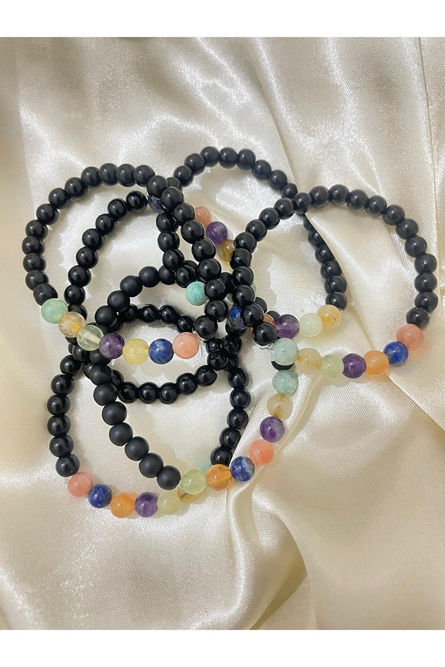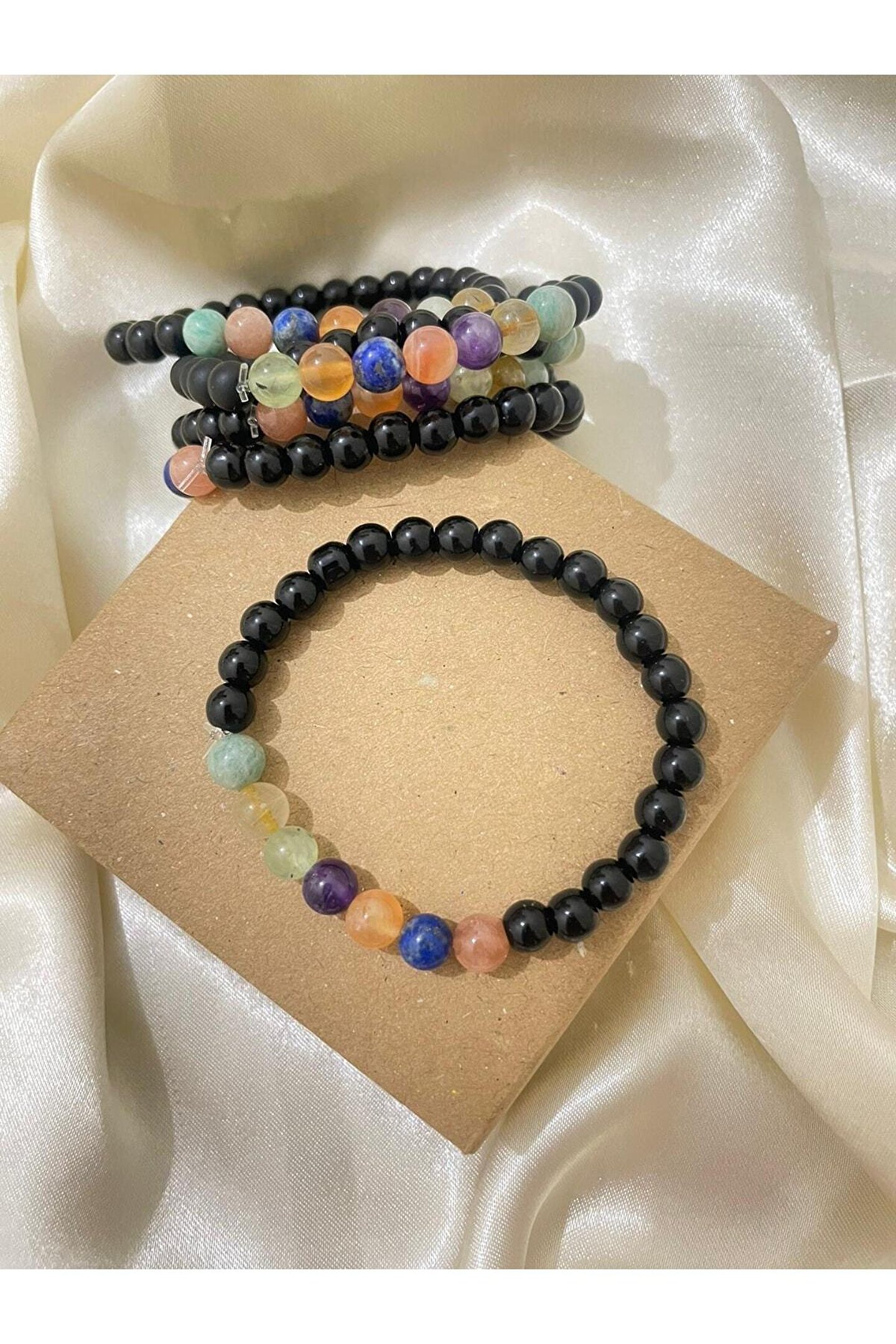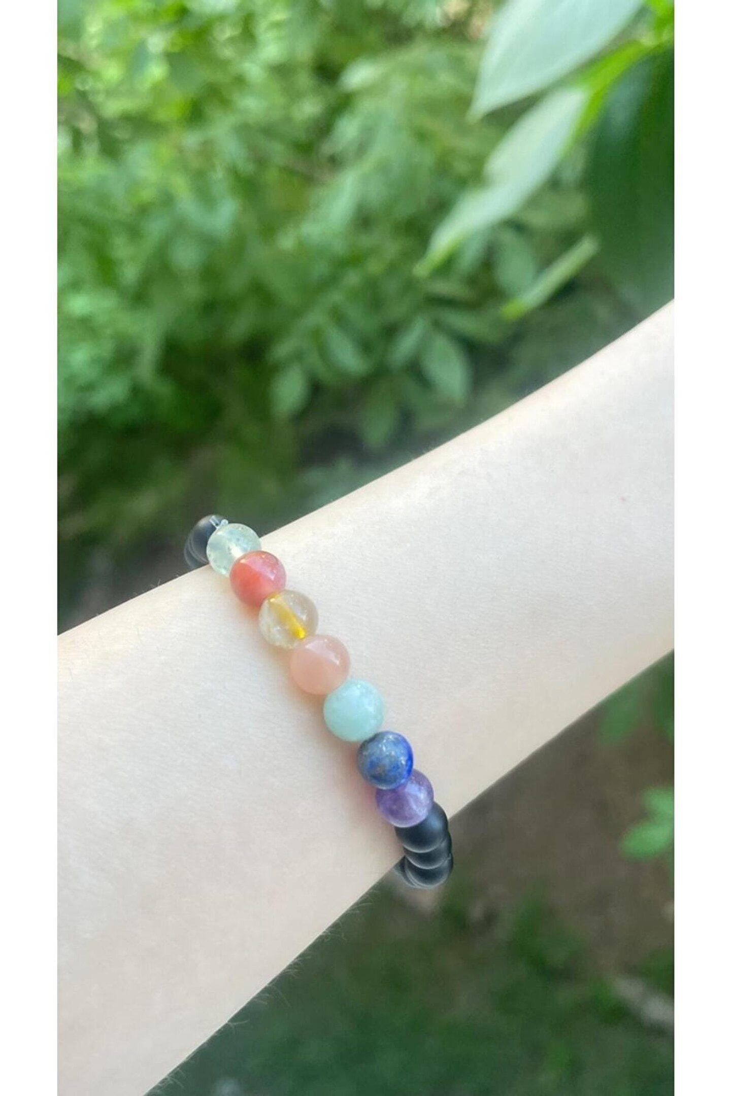 Doğal taşların pozitif enerjisiyle ruhunuzu canlandırın.; Yedi farklı çakra rengiyle kişisel gelişiminizi destekleyin.; Şık tasarımıyla günlük kullanım için ideal, bijuteri bileklik.; Doğal taşların sağladığı doğal güzelliği parmaklarınızda hissedin.;