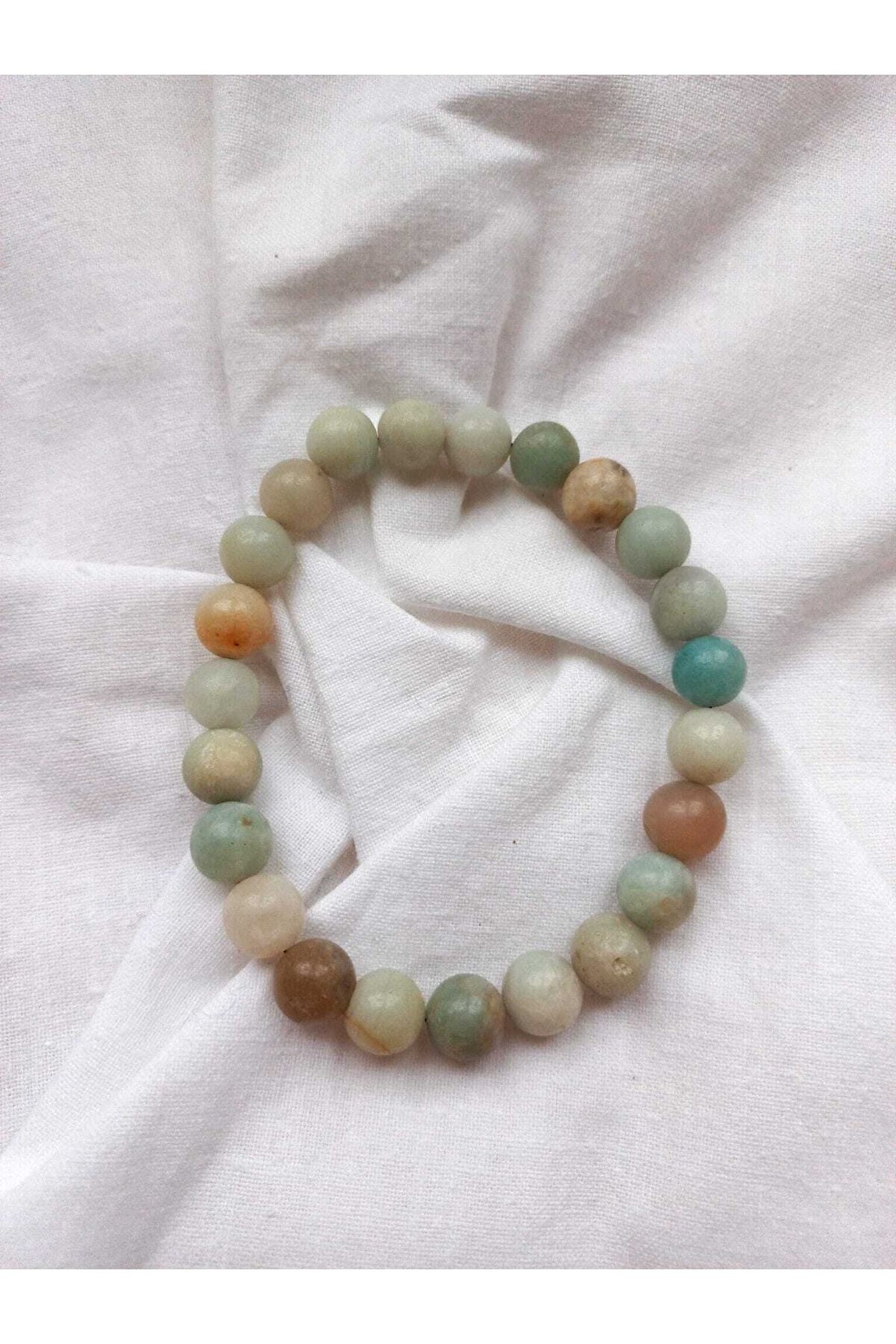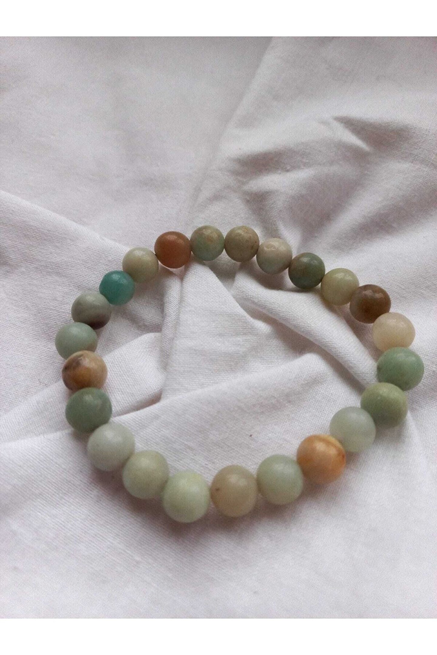 ?Çakraları düzenler ve sükunete kavuşturur.; ; ?nde rahatlama sağlar.; ; ?Negatif enerjiyi etkisiz hale getirir.; ; ?Aşırı ve ani duygusal çıkışları engeller ve dizginler.; ; ?Değişimlerin kabullenilmesinde yardımcı olur.; ; ?İletişim becerisini arttırır.; ; ?Kavrama gücünü arttırır.; ; ?Stresi azaltır.; ; ?Kalp, ve kaslar olmak üzere bedeni güçlendirir.; ; Hakiki Doğal taştan dizilmiştir.; ; Dizide 24 AD.; ; Amazonit bulunmaktadır.; ; Esnek yapısı sayesinde Her bileğe uyum göstermektedir.;