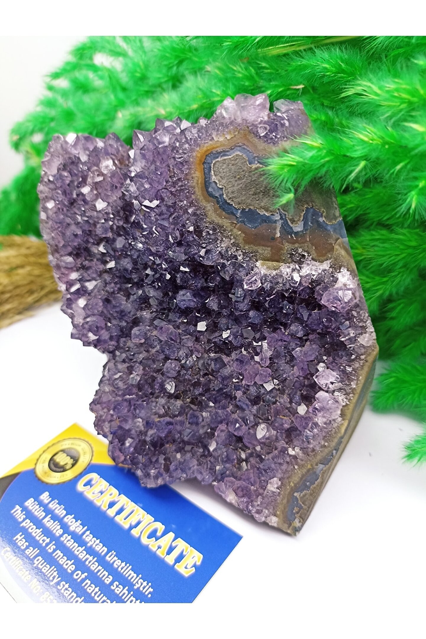 Radyasyondan ve negatif enerjiden korur. Pozitif enerji verir. Gözlere iyi gelir. Negatif elektrik yükü taşıdığından dolayı; bedendeki fazla elektrik yükünü toplayarak beyin gücünü yükseltir. Kalp rahatsızlıklarına iyi gelir. Mükemmel bir kan temizleyicidir. Alerjiye iyi gelir. Öfke, kin ve korkuyu yatıştırır, stresi giderir ve pozitif enerji verir. Kullanan kişiye iyi şans getirir. Ametist son derece güçlü ve koruyucu bir taştır. Çevresindeki enerjileri sevgiye dönüştürür, ataklara karşı koruyucudur,. ÜRÜN 1 ADET SERTİFİKASI İLE GELMEKTEDİR.ÜRÜN BOYUTU:9CM --ENİ:10,5CM--AĞIRLIĞI:1089GRAM