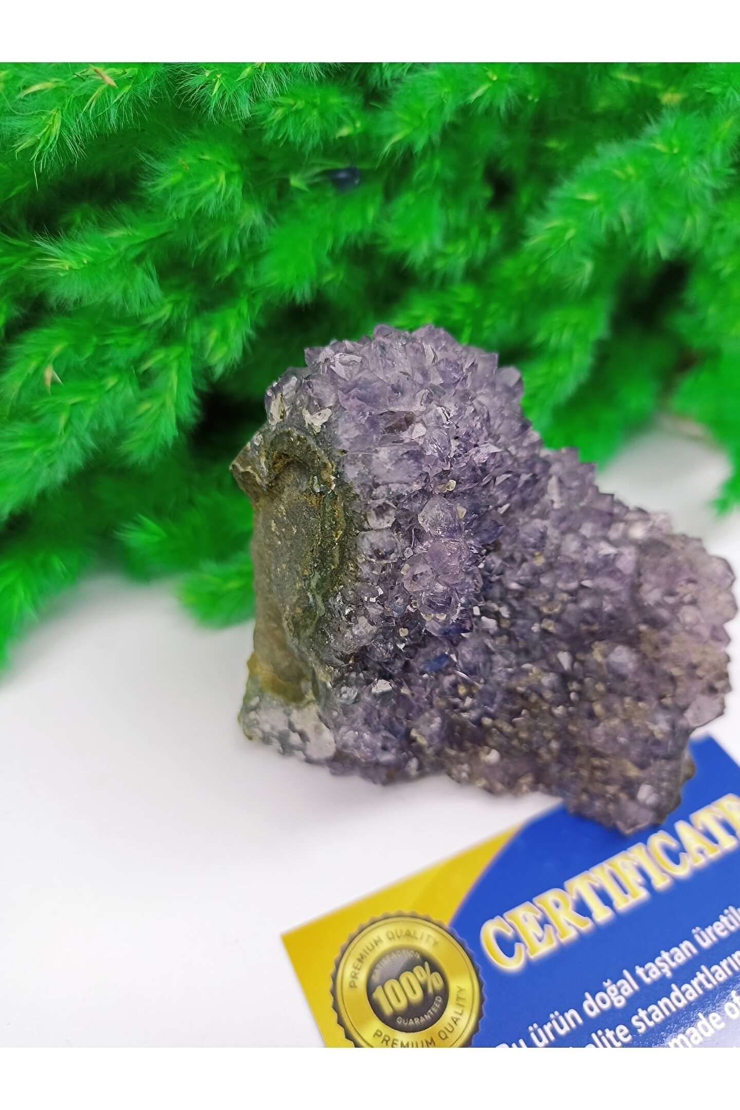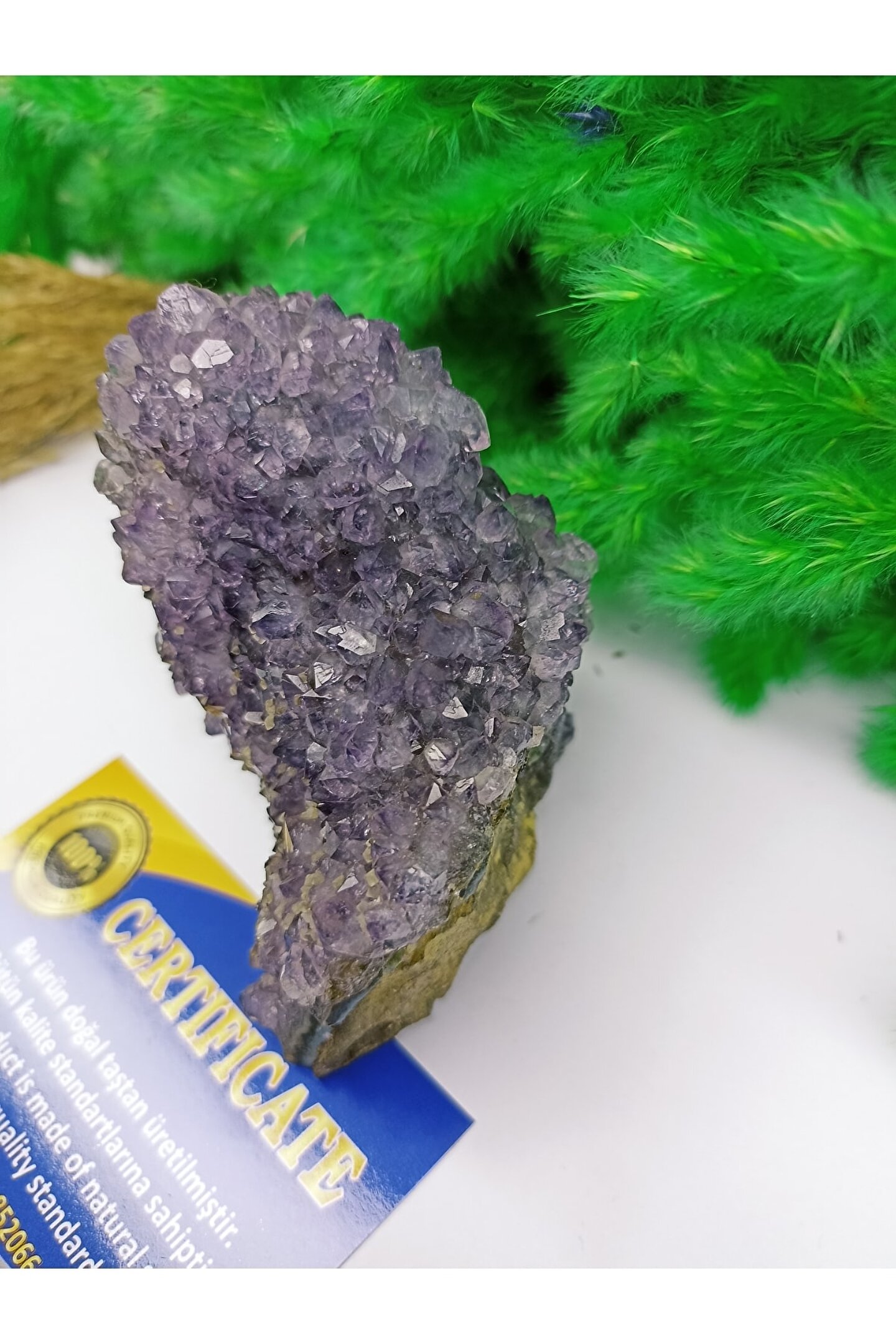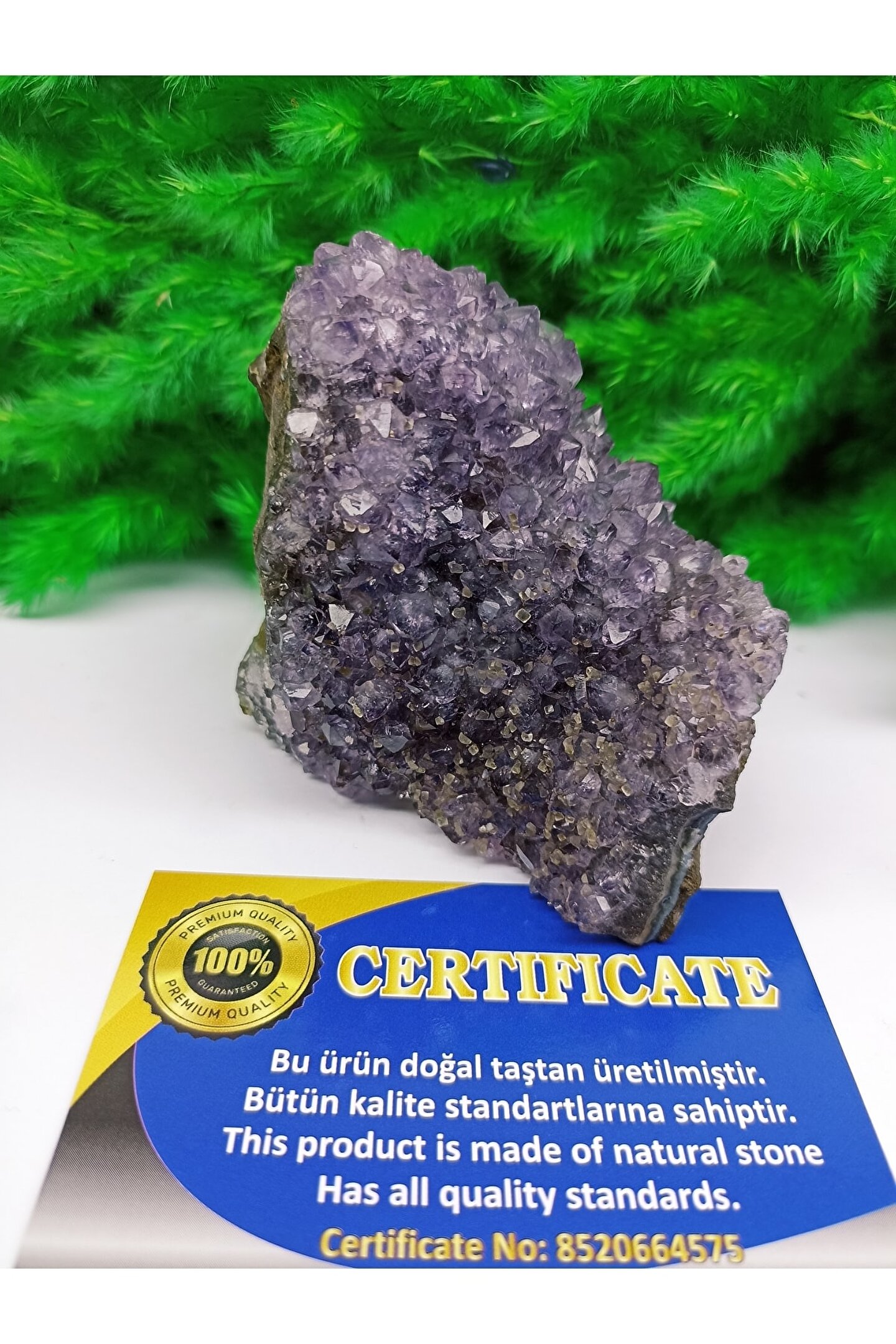 Radyasyondan ve negatif enerjiden korur. Pozitif enerji verir. Gözlere iyi gelir. Negatif elektrik yükü taşıdığından dolayı; bedendeki fazla elektrik yükünü toplayarak beyin gücünü yükseltir. Kalp rahatsızlıklarına iyi gelir. Mükemmel bir kan temizleyicidir. Alerjiye iyi gelir. Öfke, kin ve korkuyu yatıştırır, stresi giderir ve pozitif enerji verir. Kullanan kişiye iyi şans getirir. Ametist son derece güçlü ve koruyucu bir taştır. Çevresindeki enerjileri sevgiye dönüştürür, ataklara karşı koruyucudur,. ÜRÜN 1 ADET SERTİFİKASI İLE GELMEKTEDİR.ÜRÜN BOYUTU:6,5CM --ENİ:7CM--AĞIRLIĞI:288GRAM