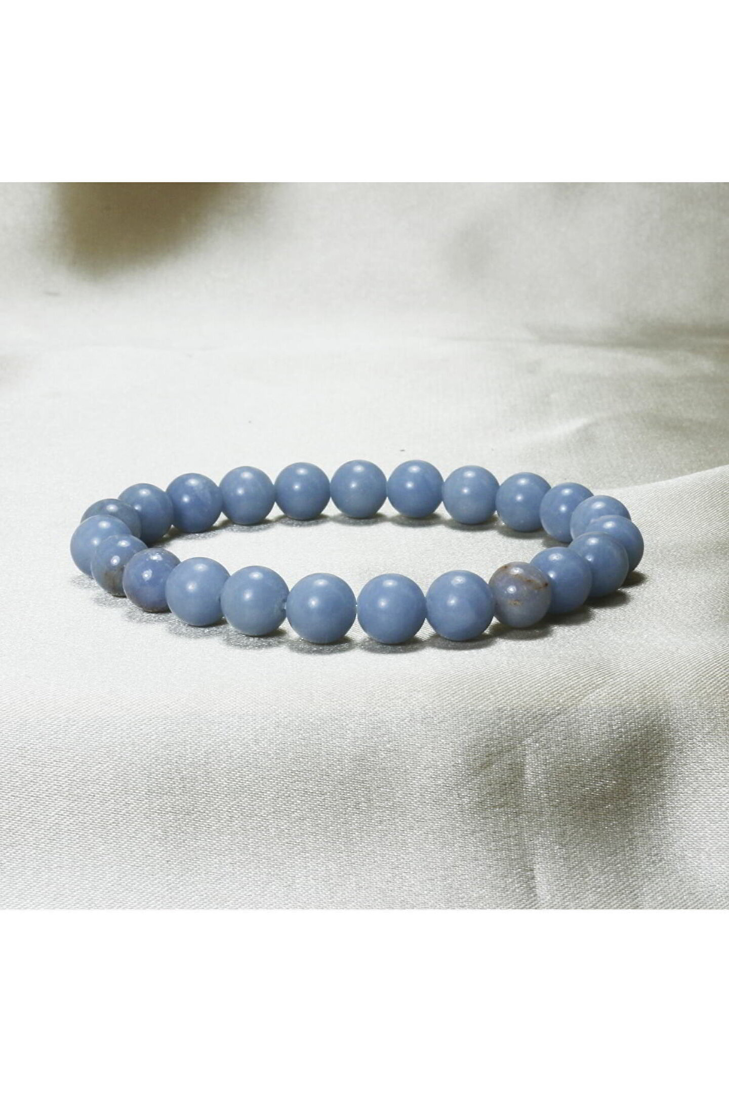 Angelit taşı bileklik (Melek taşı bileklik) doğal taş özelliklerinde bulunan huzur veren taş özelliğini rengiyle harika bir uyum içinde yansıtıyor.; ; Güçlü bir şifalı taş olarak Melek taşı, diğer doğal taş özellikleri ile de sadece bir doğal taş bileklik almadığınızı çok net bir şekilde gösteriyor.; ; Bileklik tane ebatları 8 mm;