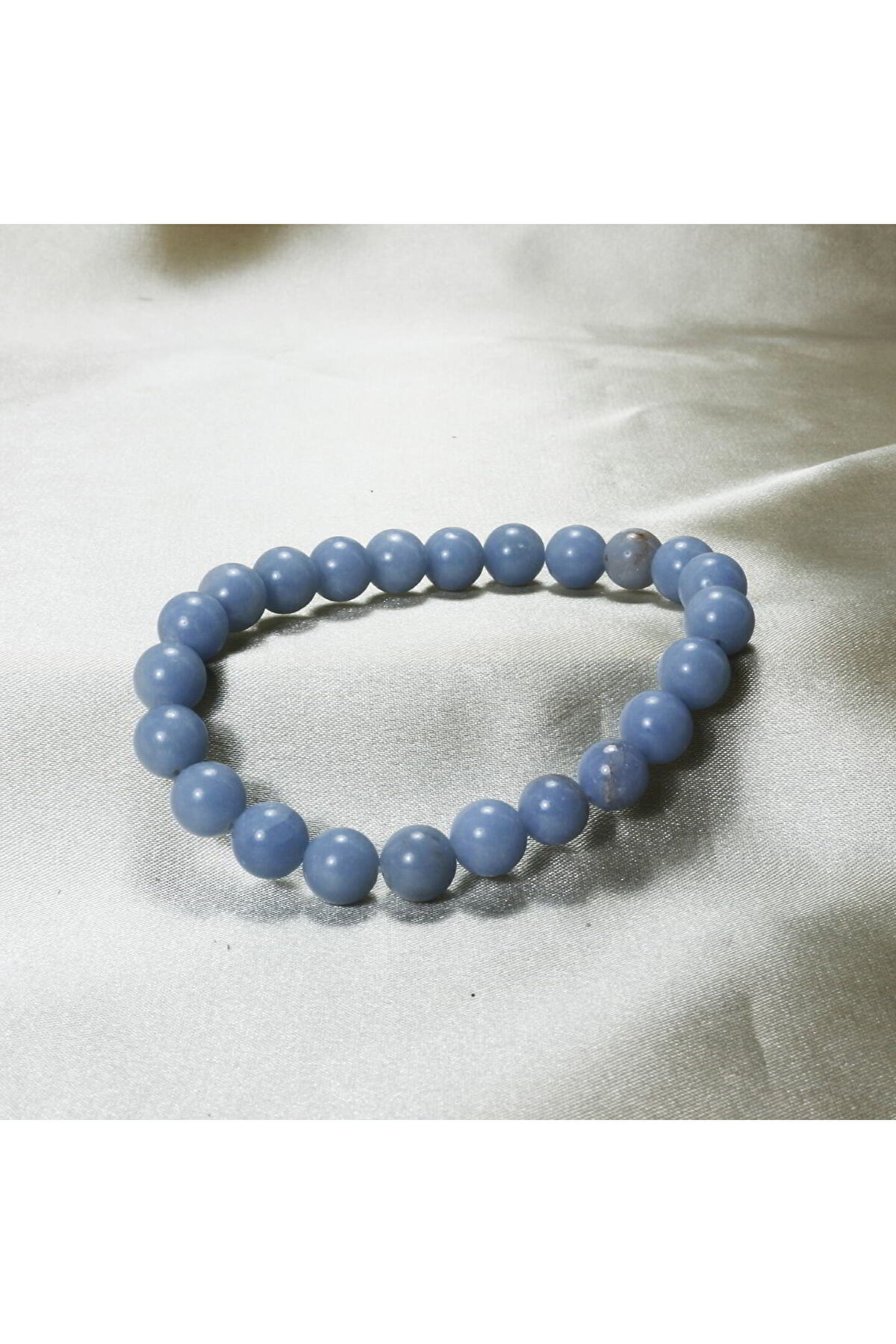 Angelit taşı bileklik (Melek taşı bileklik) doğal taş özelliklerinde bulunan huzur veren taş özelliğini rengiyle harika bir uyum içinde yansıtıyor.; ; Güçlü bir şifalı taş olarak Melek taşı, diğer doğal taş özellikleri ile de sadece bir doğal taş bileklik almadığınızı çok net bir şekilde gösteriyor.; ; Bileklik tane ebatları 8 mm;