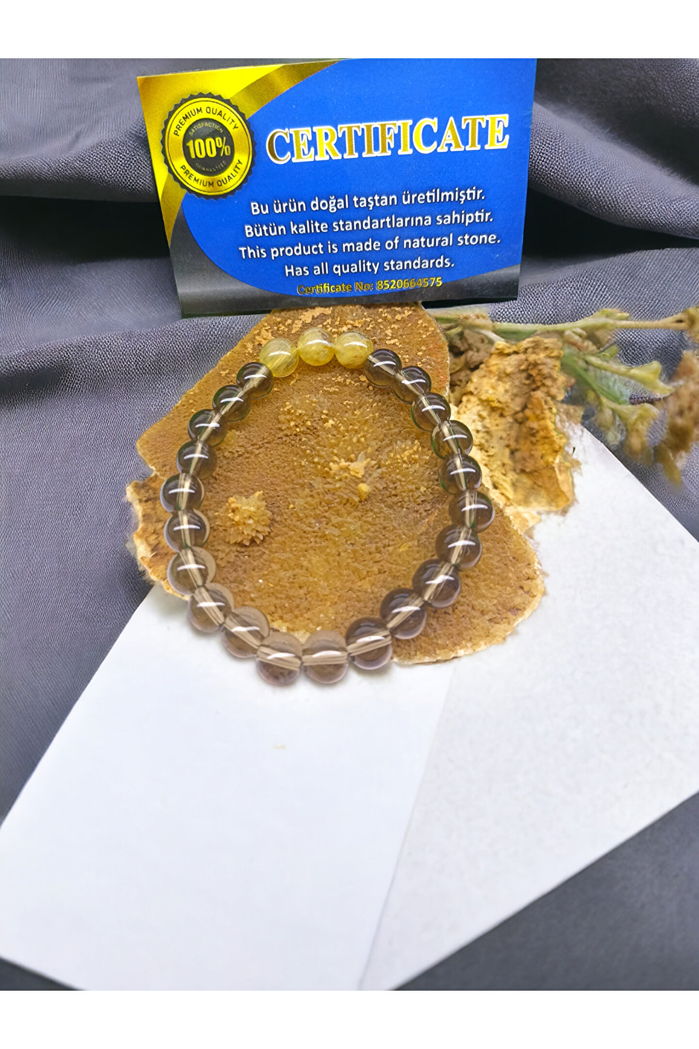 DOĞAL TAŞ CENNETİ ANSİYETE UYKUSUZLUK DOĞAL TAŞ BİLEKLİK (SERTİFİKALI)(DUMANLI-GOLDEN QUARTSZ)
