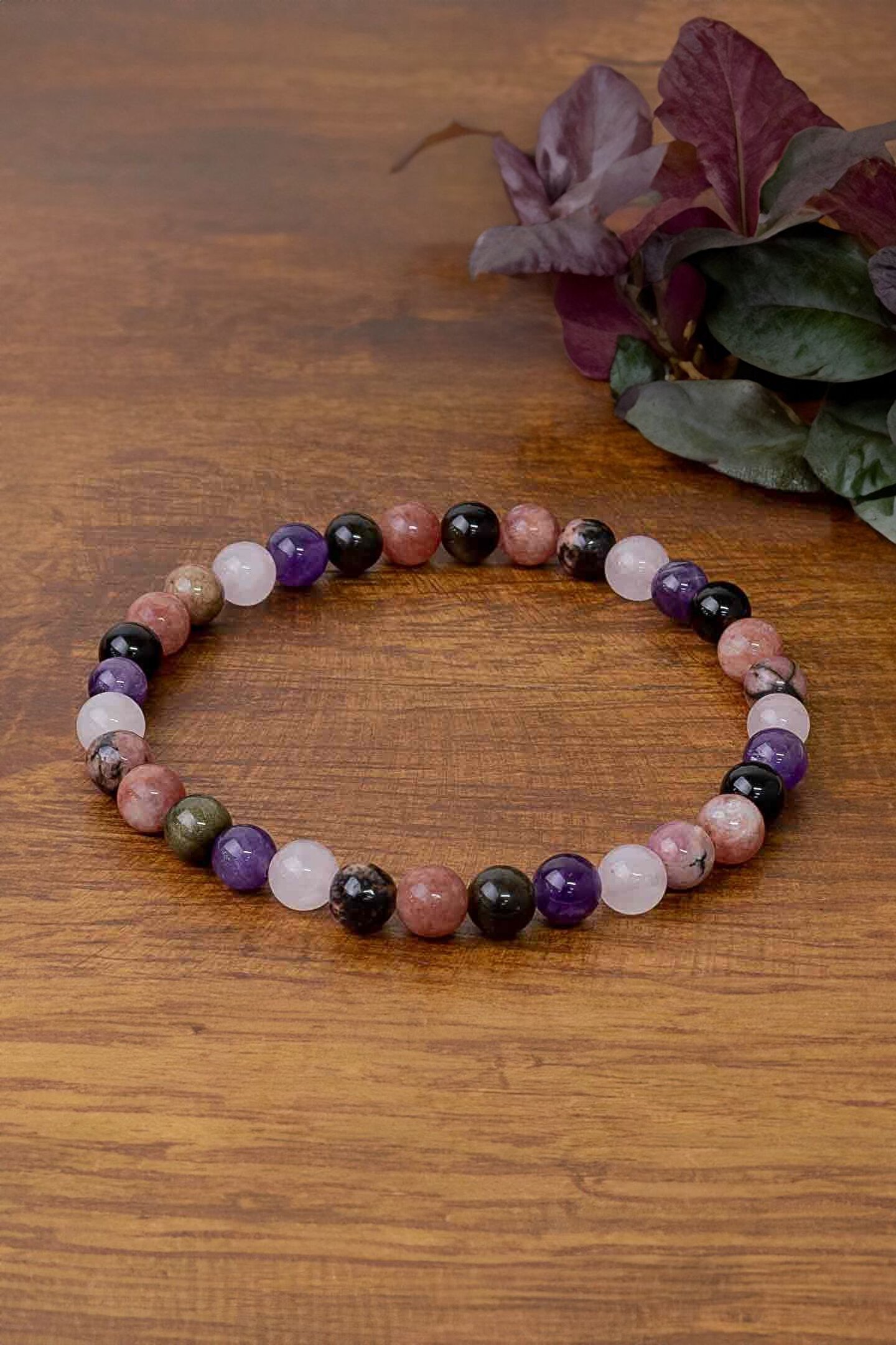 Doğal taşların şıklığını ve enerjisini bileğinizde hissedin: Aşk sevgi bilekliği, pembe kuvars, ametist, obsidyen, güneş taşı ve rodonit taşlarından oluşan bu bileklik, doğanın zarafetini ve pozitif enerjisini yanınızda taşımanızı sağlar; Her bir bileşen, bilekliğe benzersiz bir karakter kazandırır: Farklı renk ve dokulara sahip bu taşlar, bilekliğe hem görsel bir çekicilik katarken hem de kişisel tarzınıza özgün bir dokunuş ekler; Doğal taş kullanımı sayesinde her bileklik benzersizdir: Her bileklik, doğal taşların benzersiz desenleri ve renkleriyle birbirinden farklıdır; bu da her birini eşsiz kılar ve kişisel bir aksesuar deneyimi sunar; Doğal taşların faydalarını hissedin: Bu bileklik, sadece estetik bir aksesuar değil; aynı zamanda enerji taşı olarak da bilinir ve günlük yaşamınızda pozitif bir etki yaratmanıza yardımcı olabilir;