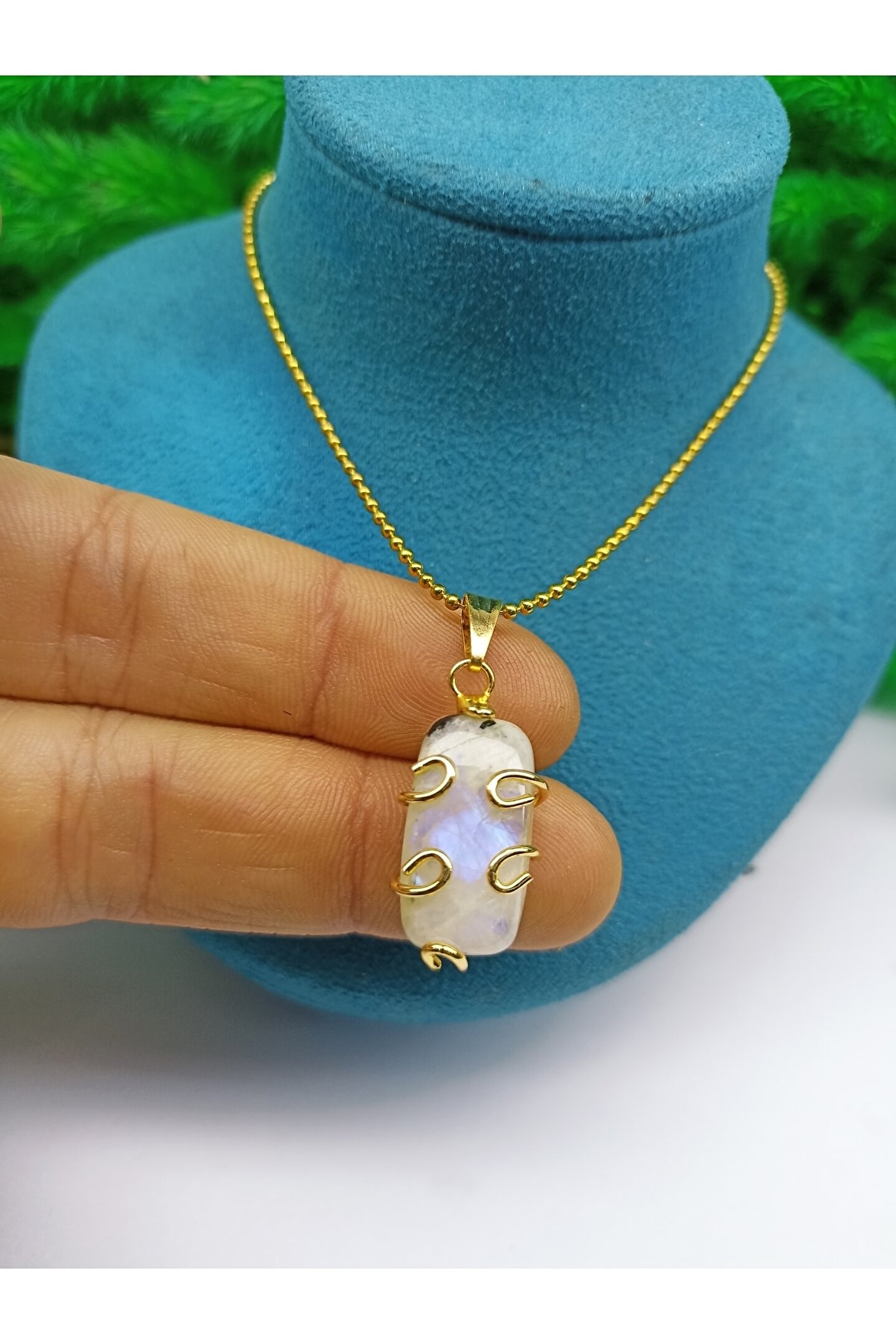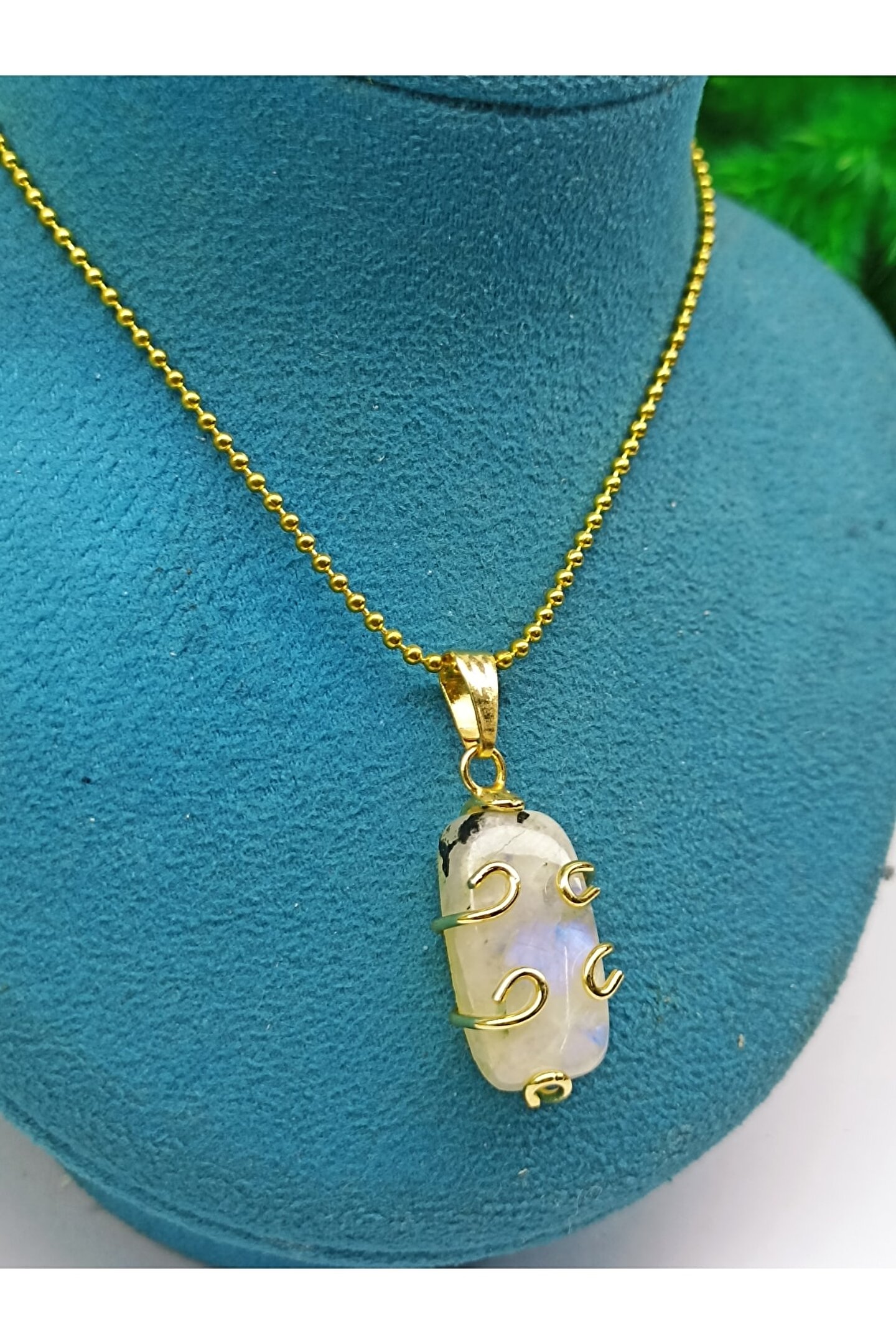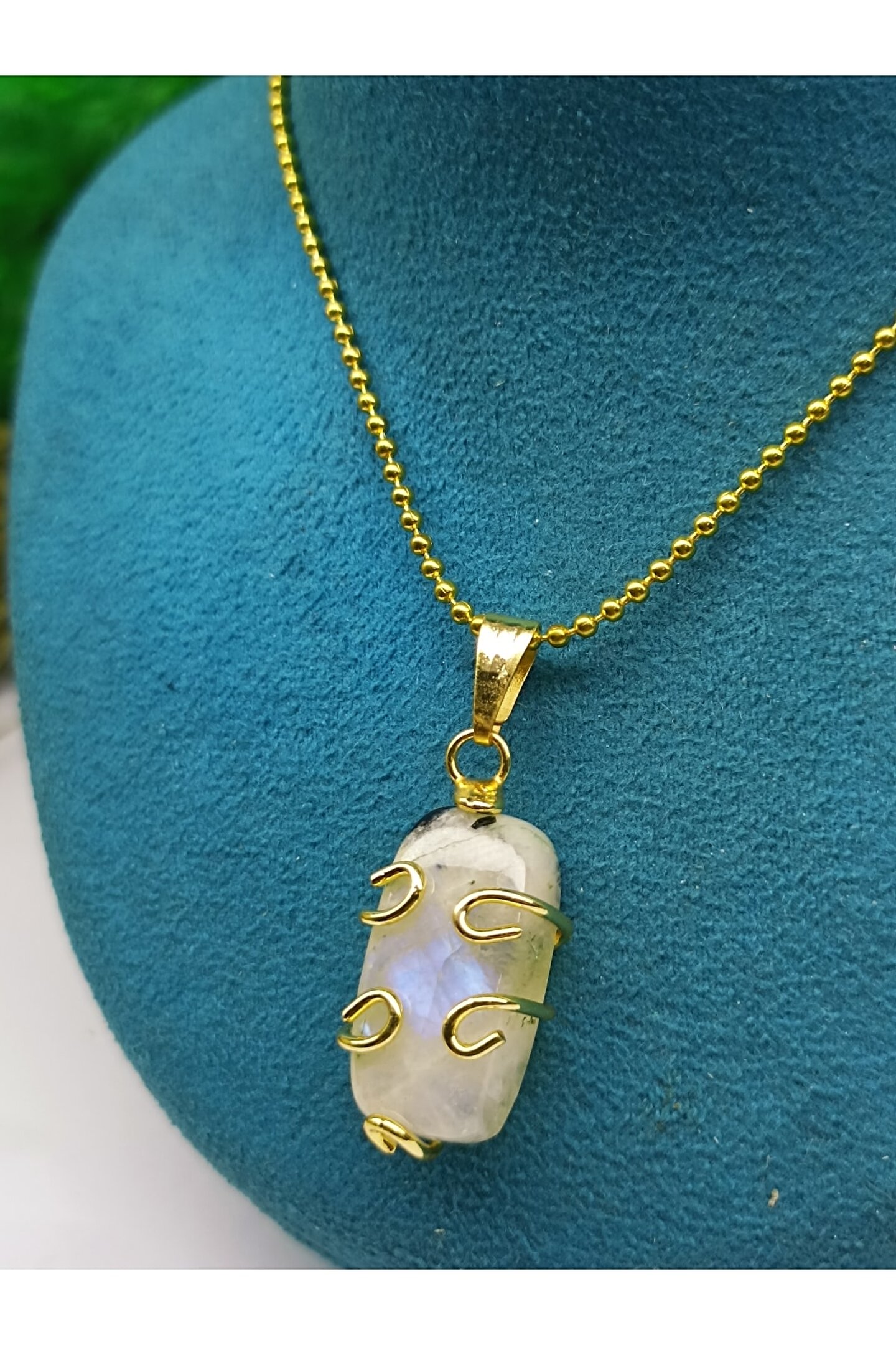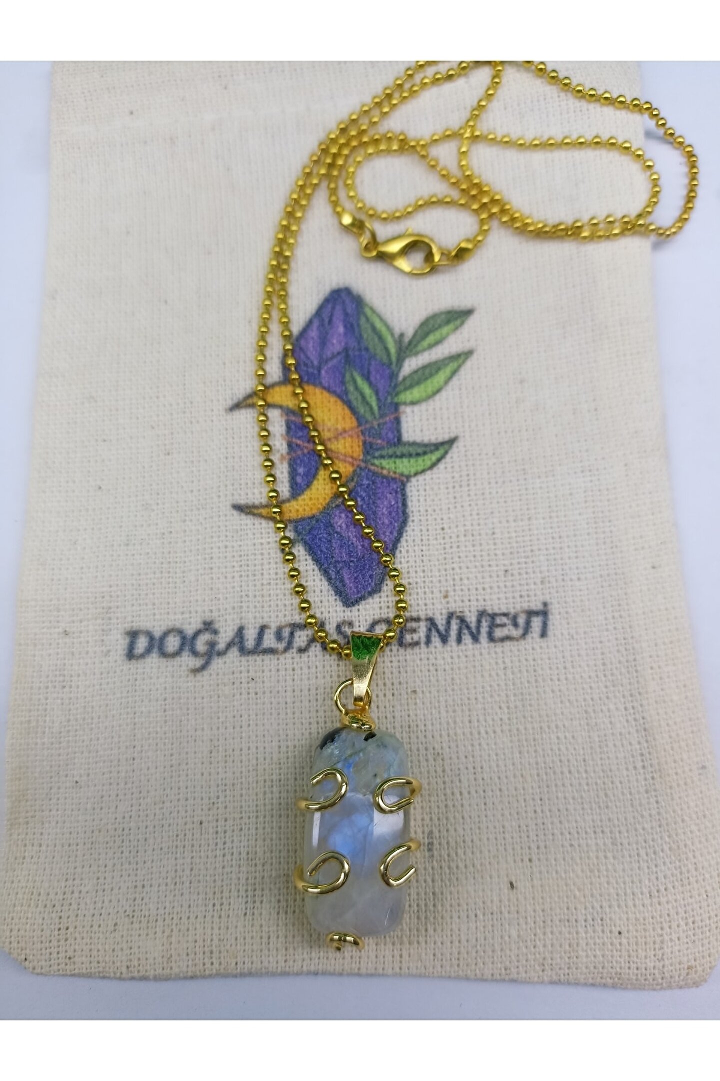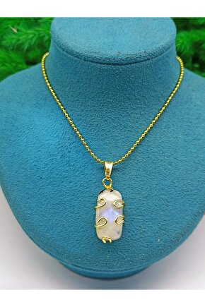 DOĞAL TAŞ CENNETİ Ay Taşı A Kalite Altın Kaplama Kolye Ucu(sertifikalı)