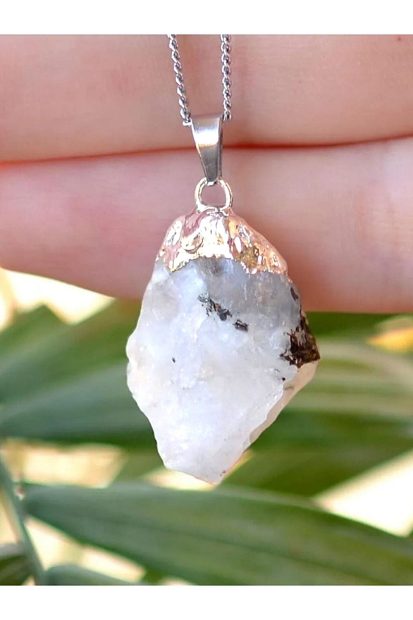 - Doğal Ay Taşı'nın şifa verici enerjisi ile zenginleştirilmiş, metal zincirli kolye ucu, günlük kullanım için ideal bir aksesuardır.; - Yetişkinler ve her cinsiyetten kullanıcılar için uygun olan bu kolye ucu, herkesin tarzına kolayca uyum sağlar.; - Doğal Taş materyali sayesinde hem estetik hem de doğayla iç içe bir deneyim sunar.; - Sertifikalı yapısıyla kalite ve güvenilirlik standartlarını karşılar, uzun süreli kullanım için idealdir.
