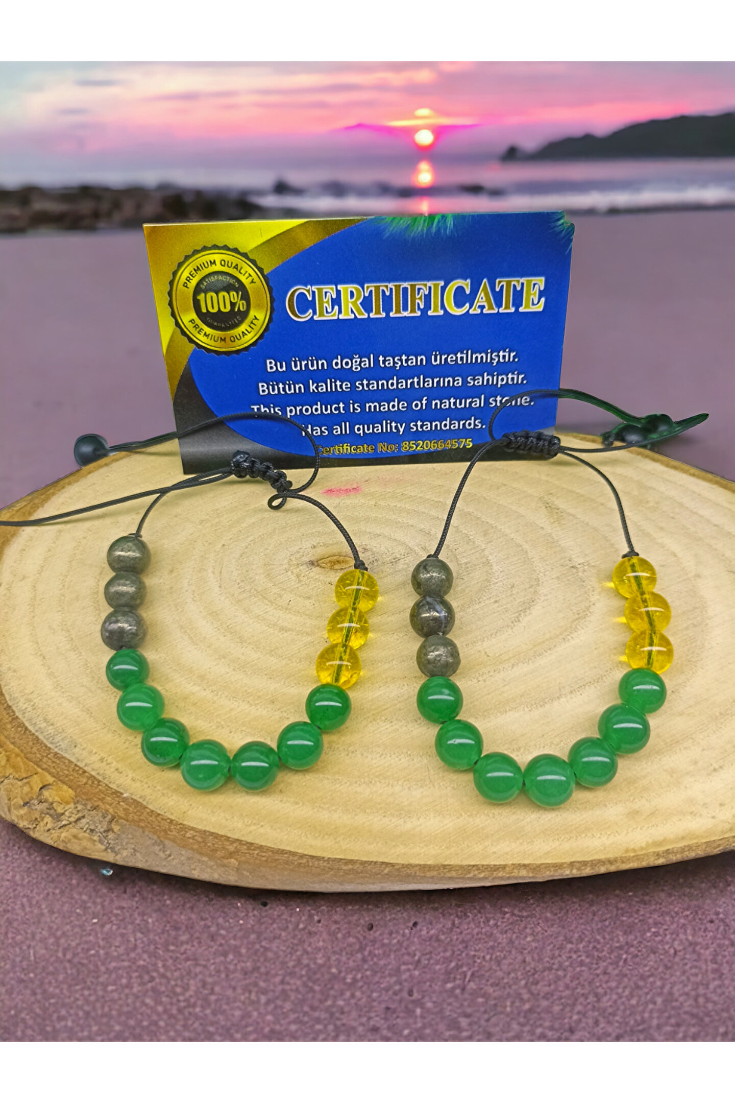 DOĞAL TAŞ CENNETİ BOLLUK BEREKET ŞANS PARA BİLEKLİĞİ(EŞ BİLEKLİĞİ ) (SERTİFİKALI)