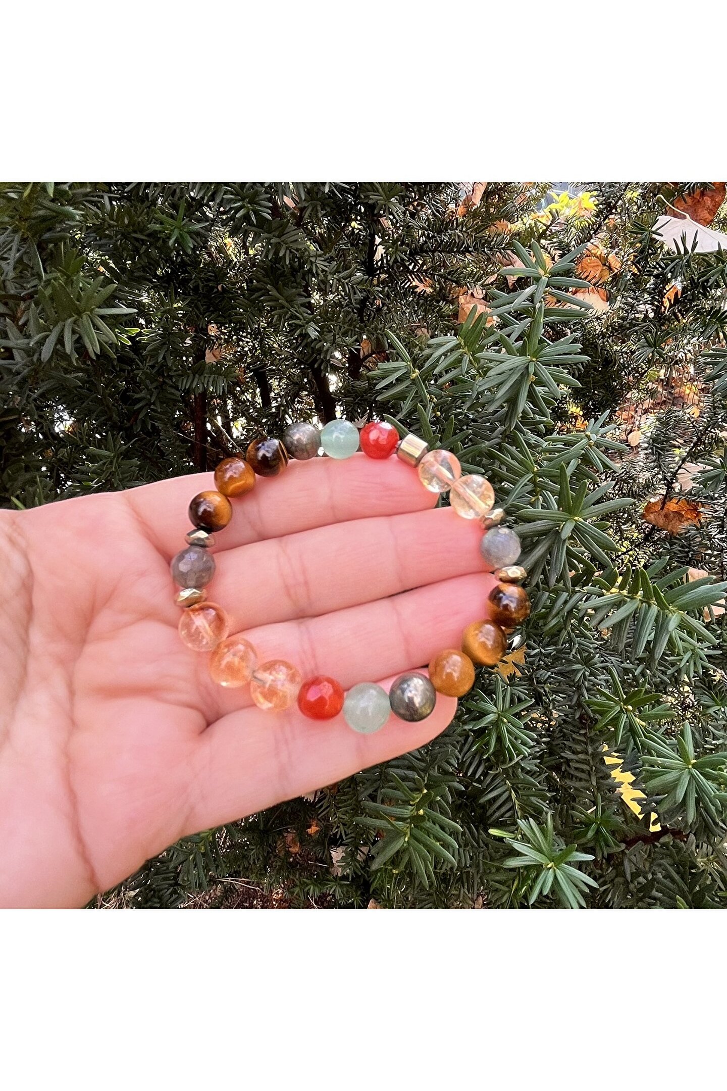 DOĞAL TAŞ CENNETİ Bolluk Bereket ve Şans Bilekliği Doğal Taş Karma Tasarım 8 MM