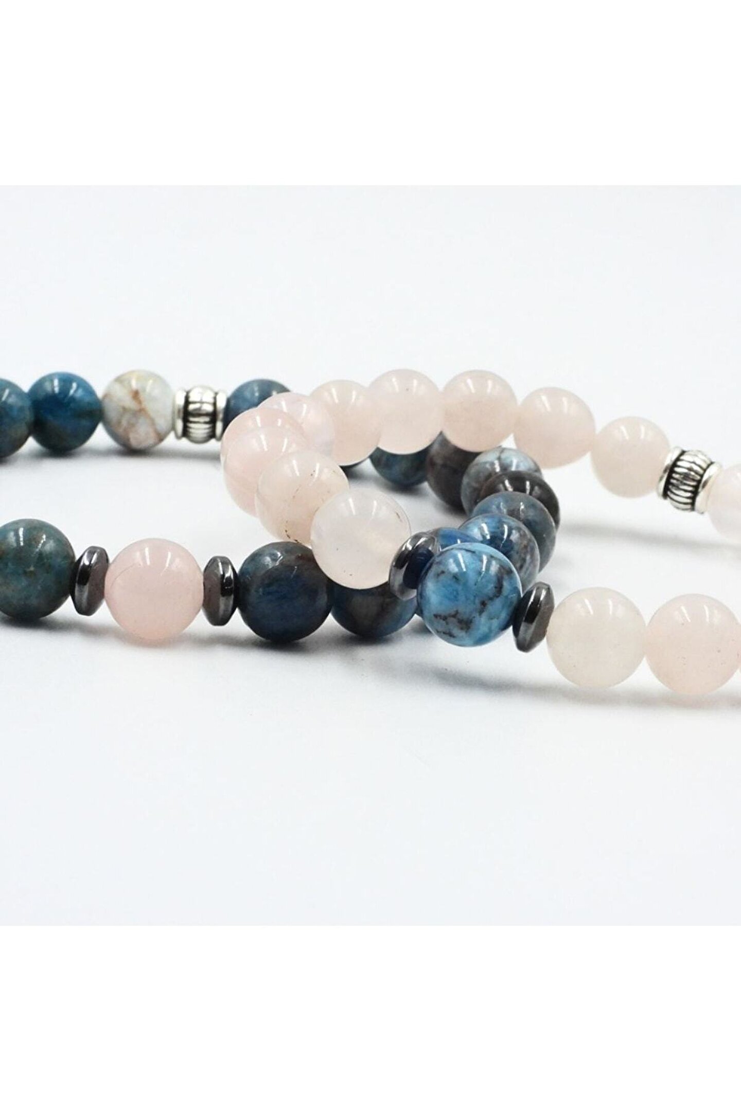 DOĞAL TAŞ CENNETİ Çift Bilekliği | Doğaltaş Çift Bilekliği | Apatit Ve Pembe Kuvars
