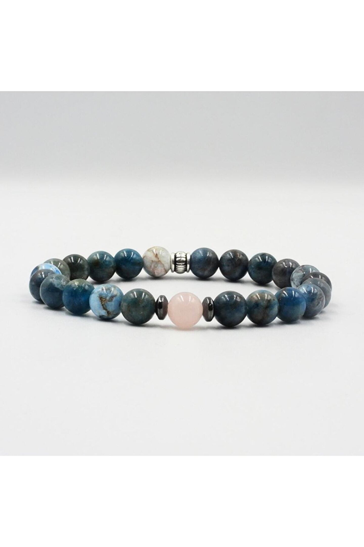 Doğal taş kullanımı sayesinde her bileklik benzersiz ve özgün bir görünüm sunar; Apatit ve pembe kuvars kombinasyonu, şıklığı ve zarafeti bir arada barındırır; Doğal taş bileklik, hem günlük kullanım hem de özel günler için ideal bir aksesuar seçeneği sunar; Apatit ve pembe kuvarsın enerjik özellikleri, bileklikte taşıdığı pozitif enerjiyi yansıtır;
