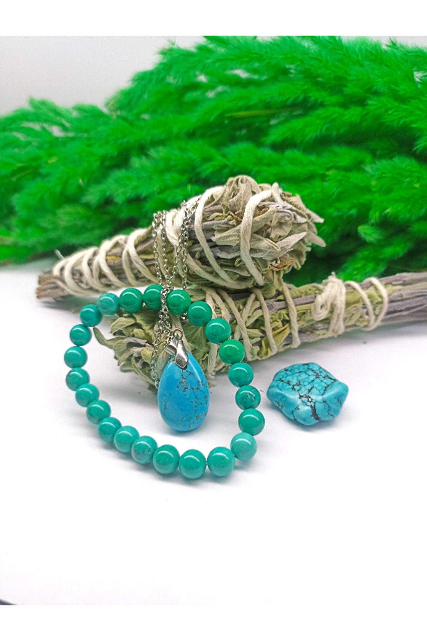 - Doğal taş kullanımı, her bir bilekliğin benzersiz ve otantik bir görünüm kazanmasını sağlar; - Sertifikalı ürünler, kalite ve güvenilirlik açısından önemli bir güvence sunar; - Turkuaz ve firuze gibi renkli taşların birleşimi, göz alıcı bir estetik oluşturur; - Çift tütsü detayı, bilekliğe farklı bir dokunuş katarken aynı zamanda şık bir detay olarak öne çıkar;