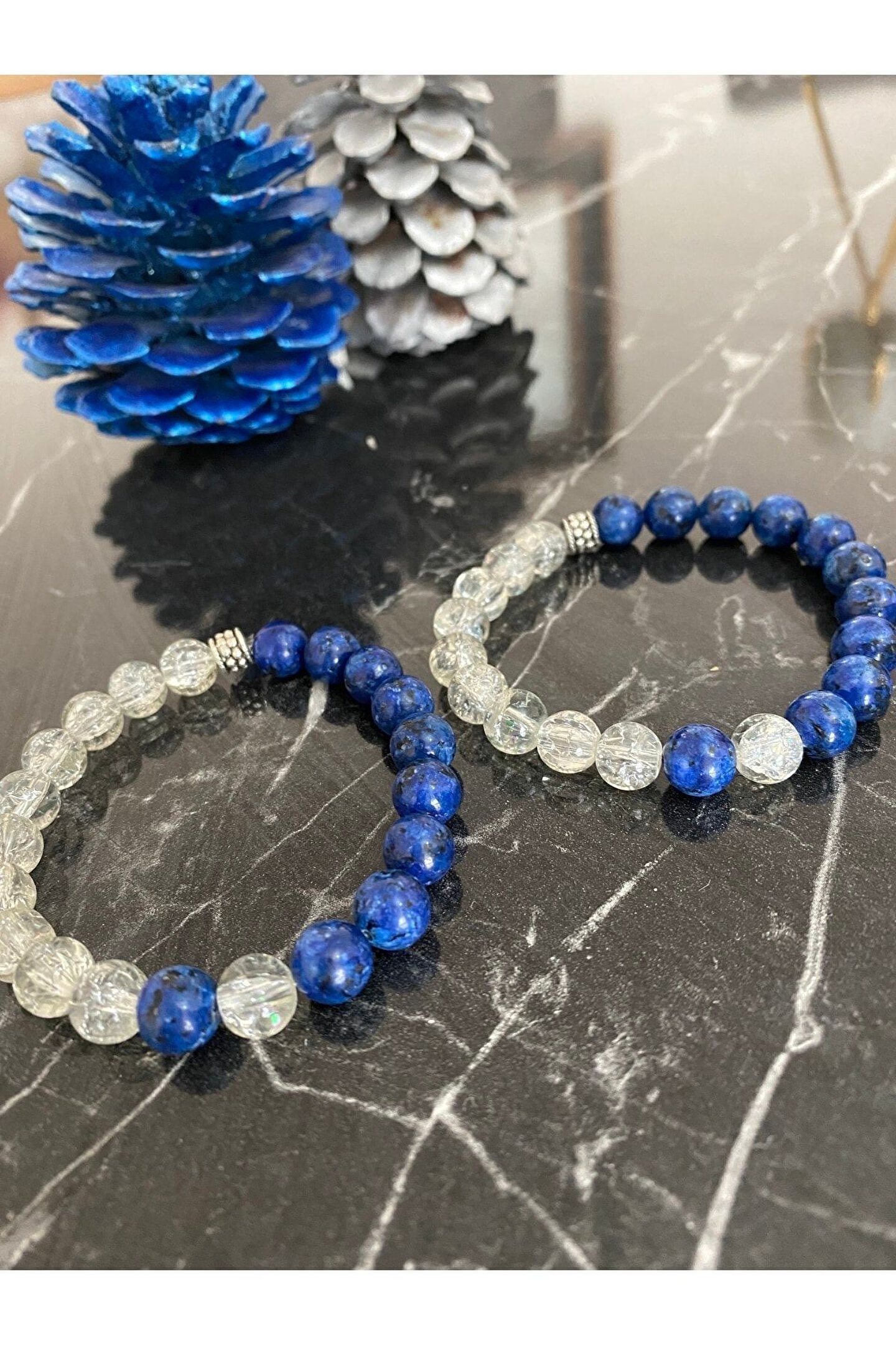 Çiftinizle hem şıklıgıyla hem şifasıyla enerjinizi tamamlayacak çift bilekliğimiz.; ; Not:dügüm gizleme aparatı stok durumuna göre değişiklik gösterebilir.; ; Lapis lazuli taşı faydaları.; ; Kişilere etkili ve kararlı bir enerji sağlar.; ; Öfke kontrolünü sağlamada oldukça faydalı bir taştır.; ; Taşıyan kişiye başarı ve terfi kazandırır.; ; İlham verici özelliğe sahiptir.; ; Fiziksel yetenek ile iletişim yeteneğine hareket kazandırır.; ; İyi yönde etkisi bulunur.; ; Kaygı ve stres bozukluğuna iyi gelir.; ; Necef taşı: İçindeki suyun kişiye huzur ve ferahlık verdiğine inanılır.; ; Her türlü olumsuz enerjiyi içine hapseder, bedeni ve zihni korur.; ; Kullanan kişiye şans getirir.; ; Ruhsal ve fiziksel dengeyi sağlar.;