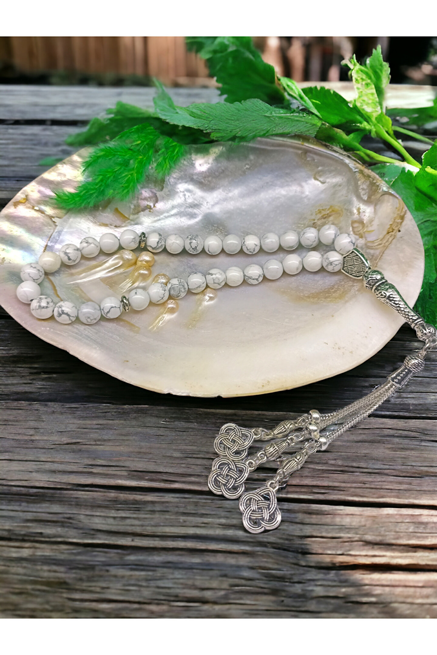 - Gümüş kaplama detaylarıyla zenginleştirilmiş, şık ve modern bir tasarıma sahip; - Sade ve zarif görünümüyle dikkat çeken düz desen tasarımı; - Doğal taş kullanımıyla her bir tesbih tanesi benzersiz ve otantik bir dokunuş sunar; - Sertifikalı özel kutusu ile birlikte gelir, bu sayede hediye olarak tercih edildiğinde de unutulmaz bir izlenim bırakır;