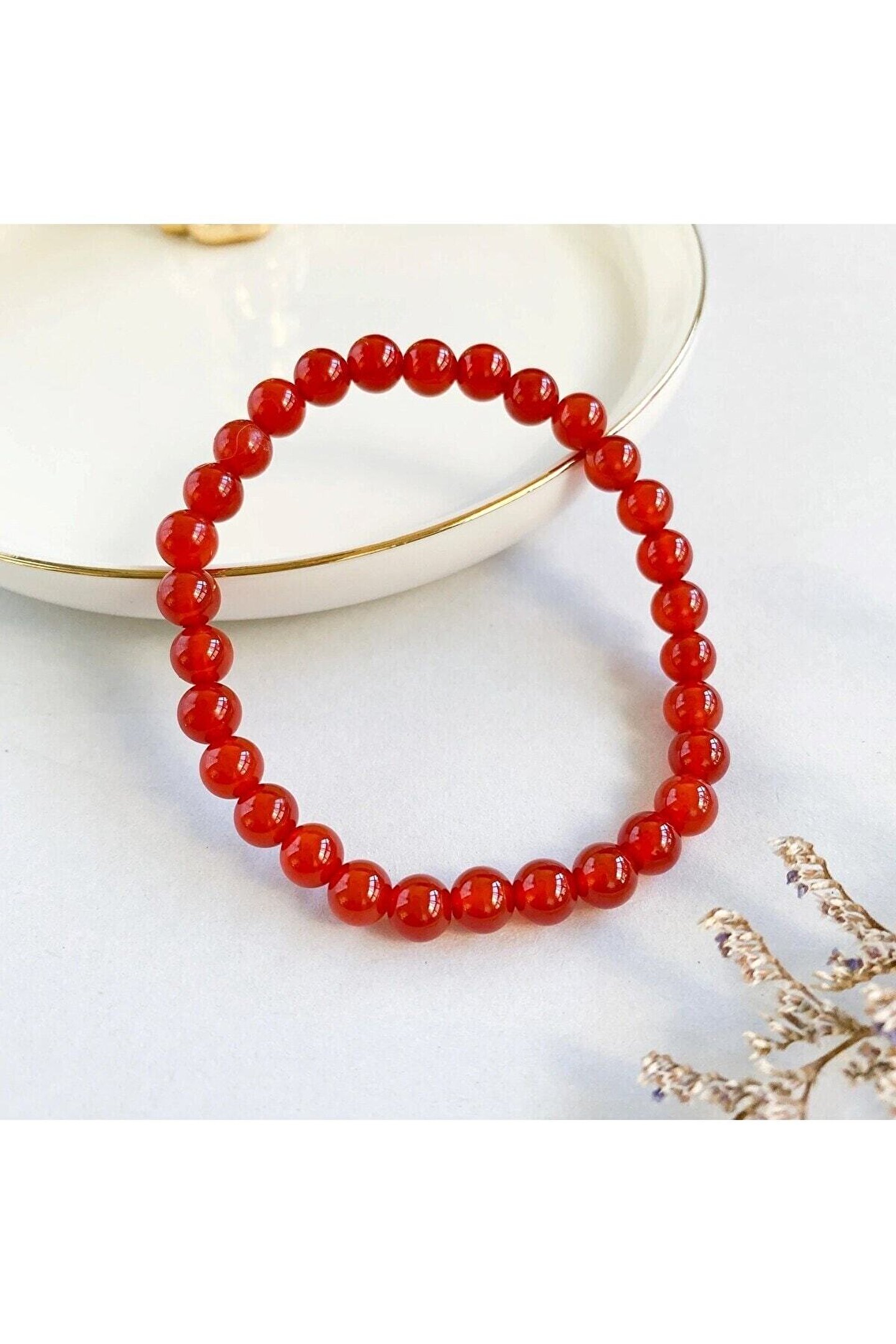 DOĞAL TAŞ CENNETİ Doğal Taş Kırmızı Akik Bileklik 6MM