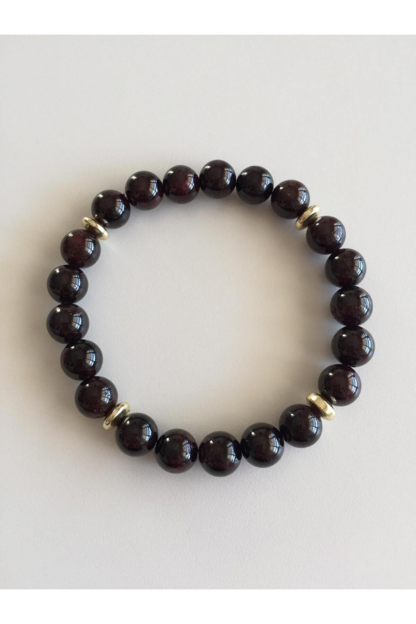 Bu üründe kullanılan 1.sınıf doğal taş LAL(granat-garnet) taşıdır, takriben 8mm çapındadır. ; Elastik yapıda olduğu için her yaşa uygundur. ; Not bölümünden bilek ölçünüze (16-17-18cm) olarak kişiye özel hazırlanmaktadır. ; Doğal taşları parfüm,saç spreyi ,deterjan,krem, sabun vb.kimyasal ürünlerden koruyunuz.Aksi takdirde doğal taş etkinliğini kaybedecektir. ; Doğal taşınızı 10-15 gün aralıklarla toprakta 24 saat bekleterek temizleyebilirsiniz. ; Granat taşının strese, depresyona, anksiyeteye iyi geldiğine inanılır. ; Ruhsal gelişimi desteklediği ve kişiyi bencillikten kurtardığı, Sakin bir ruh hâline kavuşturduğu, huzur verdiği bilinir .Özgüveni artırır. ; Sezgilerin artmasını sağlar. ; Yeni bir başlangıç yapmayı gerektiren tüm konularda bireyi destekleyerek korkusuzca atılım yapmasını, girişken olmasını teşvik eder. ; Tahammül etme gücü verir, zorluklarla mücadele etmeyi kolaylaştırır. ; Zihinsel konsantrasyonu artırır ve anlayış verir. ; Unutkanlığa iyi gelir .Hayal gücünü harekete geçirir, üretkenliğe teşvik eder. ; İnsanın kendine daha çok değer vermesini sağlar. ; Beden ve ruh arasındaki enerjiyi dengeler. ; Kıskançlık, güvensizlik, öfke gibi duyguları ortadan kaldırır. ; Yaşama sevinci verir. ; Kendiyle barışık, dışa dönük bir kişi olmaya imkân tanır. ; Geçmiş takıntısından kurtarır. ; Şans getirir. ; Kötü alışkanlıkları bırakmaya yardımcı olur. ; Dinginlik hissi vererek daha sâlim kafayla düşünmesini mümkün kılar. ; Kâbuslardan, karabasanlardan koruduğuna inanılır.;