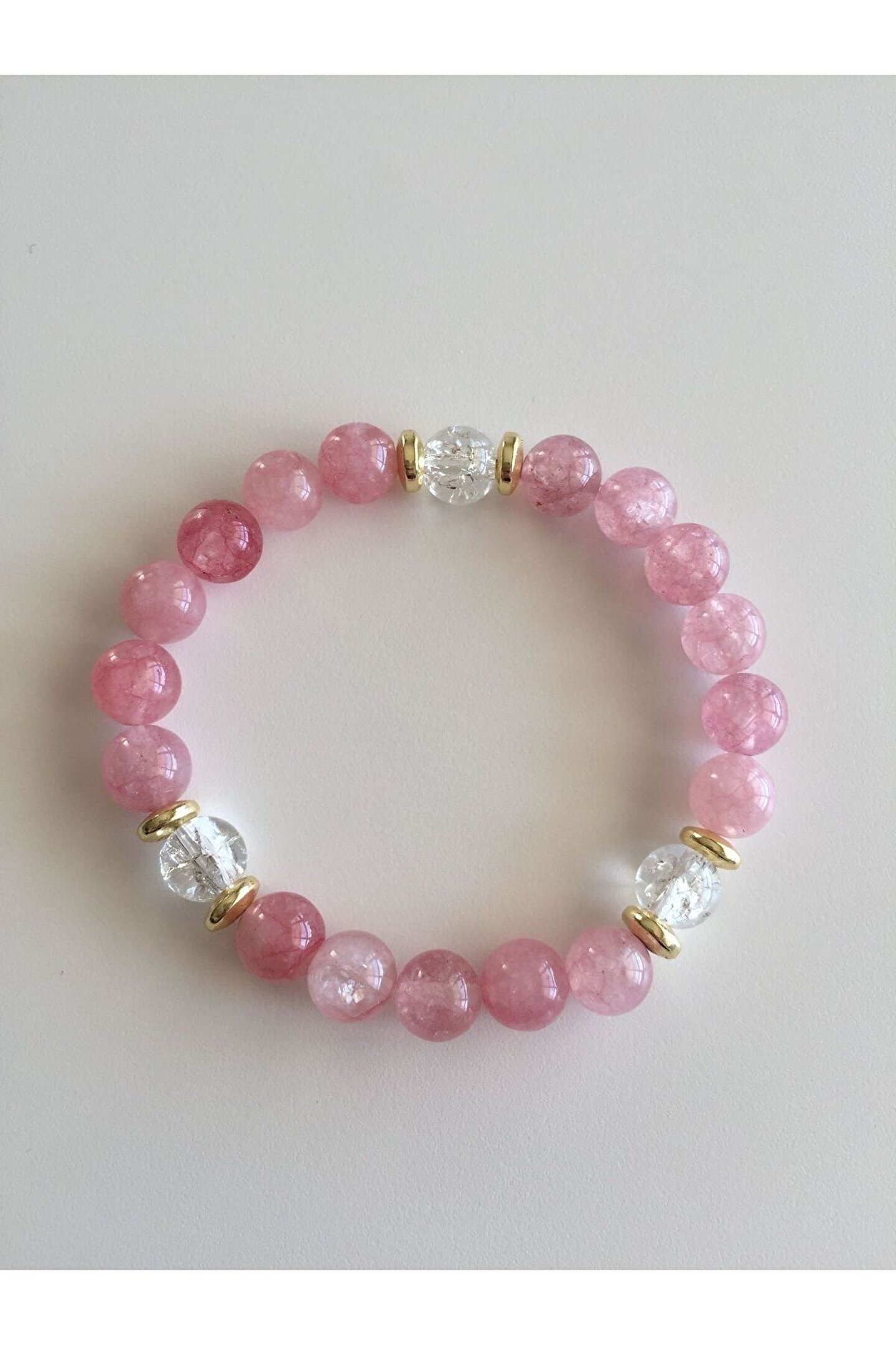 Bu üründe kullanılan doğal taş Pembe Akik ve Necef taşıdır. ; Takriben 8mm çapındadır. ; Elastik yapıda olduğu için her yaşa uygundur. ; Not bölümünden bilek ölçünüze (16-17-18cm) olarak kişiye özel hazırlanmaktadır. ; Doğal taşları parfüm,saç spreyi ,deterjan,krem, sabun vb.kimyasal ürünlerden koruyunuz.Aksi takdirde doğal taş etkinliğini kaybedecektir. ; Doğal taşınızı 10-15 gün aralıklarla toprakta 24 saat bekleterek temizleyebilirsiniz . ; Pembe akik taşı nazara karşı en iyi taşlardan birisidir. ; Vücuttaki fazla veya olumsuz enerjiyi atmaya yarar ve böylece stresi yok eder, sakinleştirir. ; Korkuların yenilmesinde, cesaretin artırılmasında kullanılır. ; Akıl ve mantık gücünü geliştirir. ; Hayal gücünü arttırır. ; Dikkati toplamaya ve mantıklı hareket etmeye yardımcı olur. ; Bedeni fiziken güçlendirir. ; Enerji yenilenmesi sağlar. ; Fiziksel enerjiyi dengeli olarak artırır. ; Cilt hastalıklarına karşı faydalıdır. ; Kırmızımsı renkteki akikler fiziksel canlılığı artırır. ; İyimserlik duygusu verir. ; Doğal taşınızı 10-15 gün aralıklarla toprakta 24 saat bekleterek temizleyebilirsiniz .;