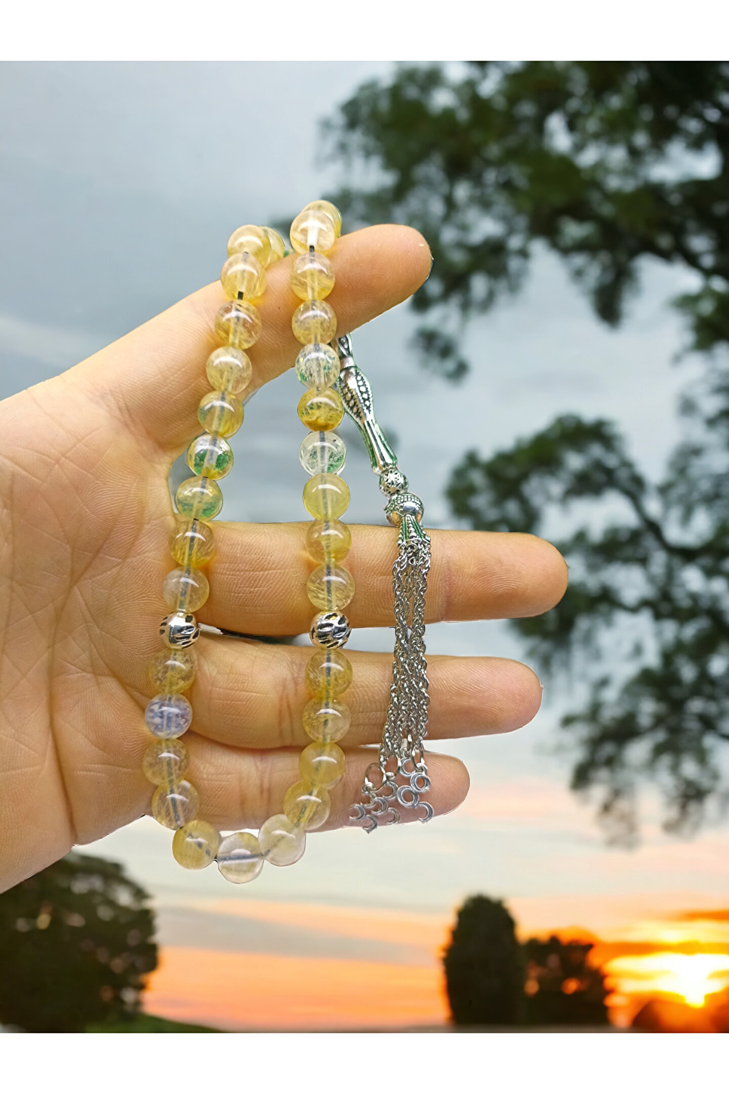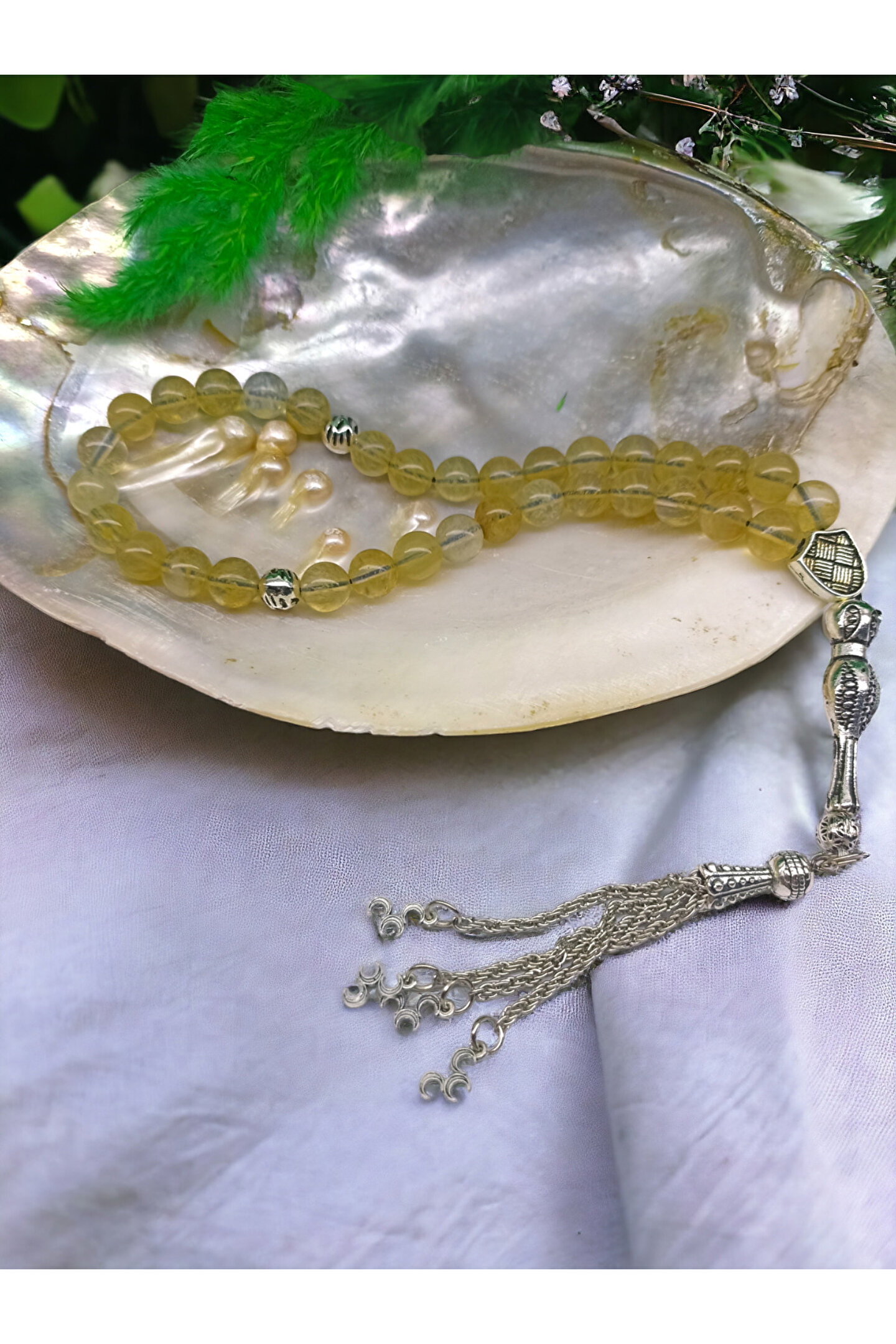 - Sade ve şık tasarımıyla dikkat çeken düz desenli sitrin tesbih, her türlü kıyafetle uyum sağlar; - Gümüş kaplama detayları ile zenginleştirilmiş bu tesbih, hem göz alıcı bir parlaklık sunar hem de uzun süreli kullanım için dayanıklılık sağlar; - Doğal sitrin taşı, tesbihin her bir parçasında benzersiz bir dokunuş katarken, doğallığın zarafetini yansıtır; - Özel sertifikalı kutusu ile gelen bu tesbih, hediye olarak tercih edildiğinde de unutulmaz bir izlenim bırakır;
