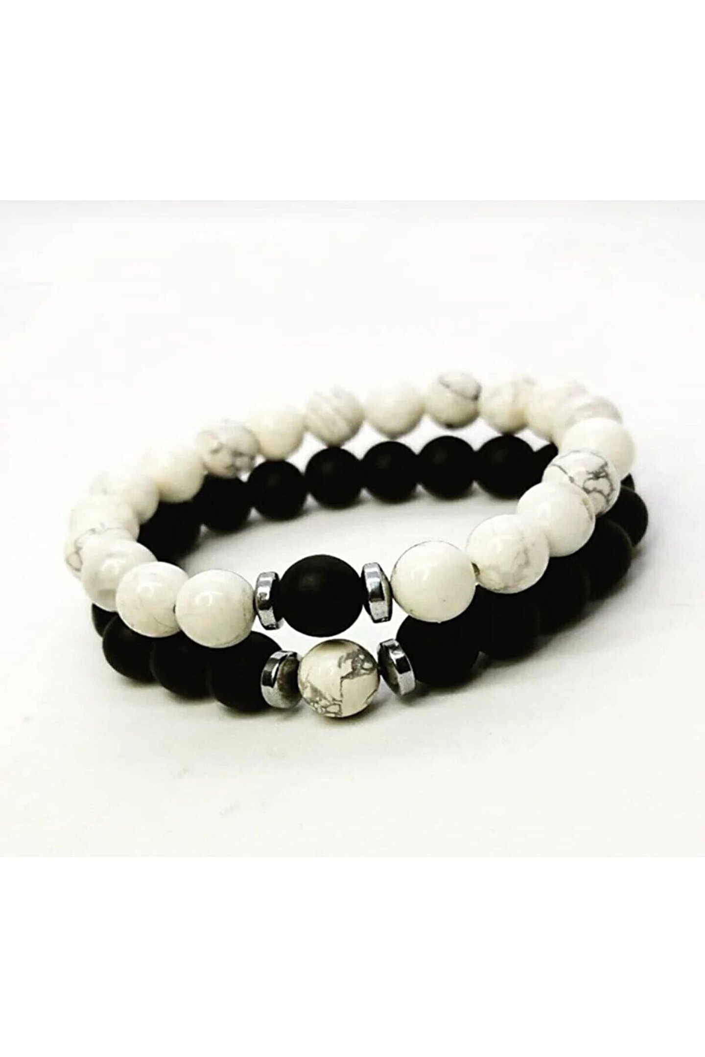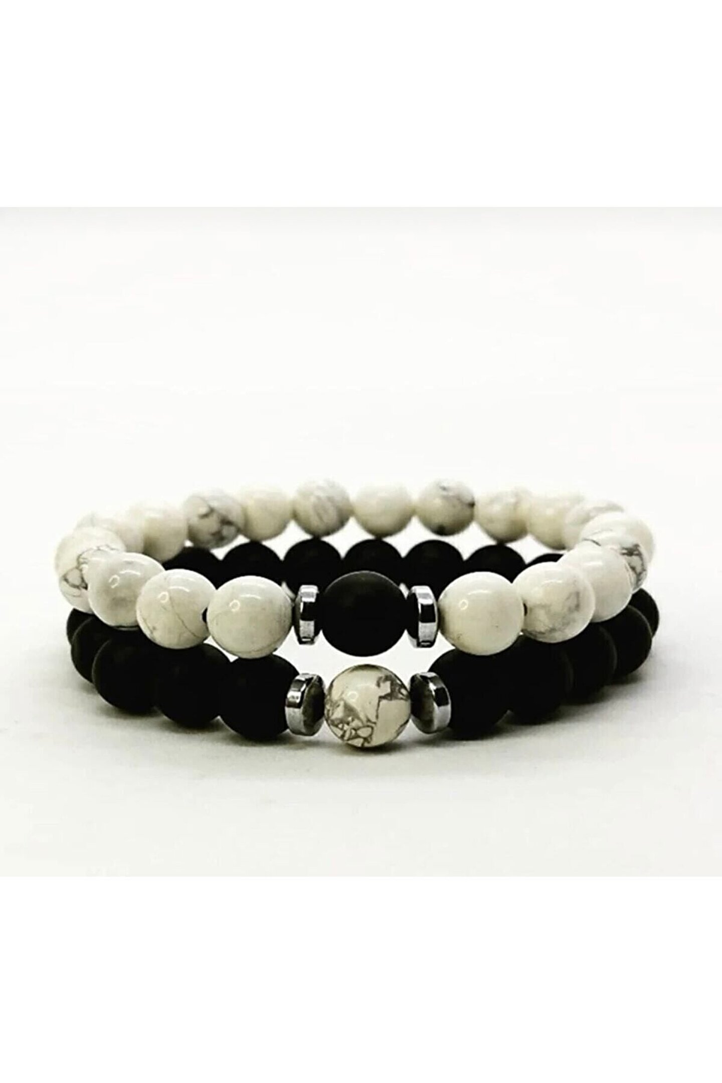 Doğal taş kullanımı sayesinde her bileklik benzersiz ve özgün bir görünüm sunar; Oniks ve havlit gibi doğal taşların zarif dokusu, bilekliğe sofistike bir hava katar; Taşın doğal yapısı, bilekliğin hem şık hem de dayanıklı olmasını sağlar; Doğal taşların renk ve desen çeşitliliği, her zevke uygun seçenekler sunar; El yapımı olması, her bir bilekliğin kişisel bir dokunuşla tamamlanmasını garanti eder;