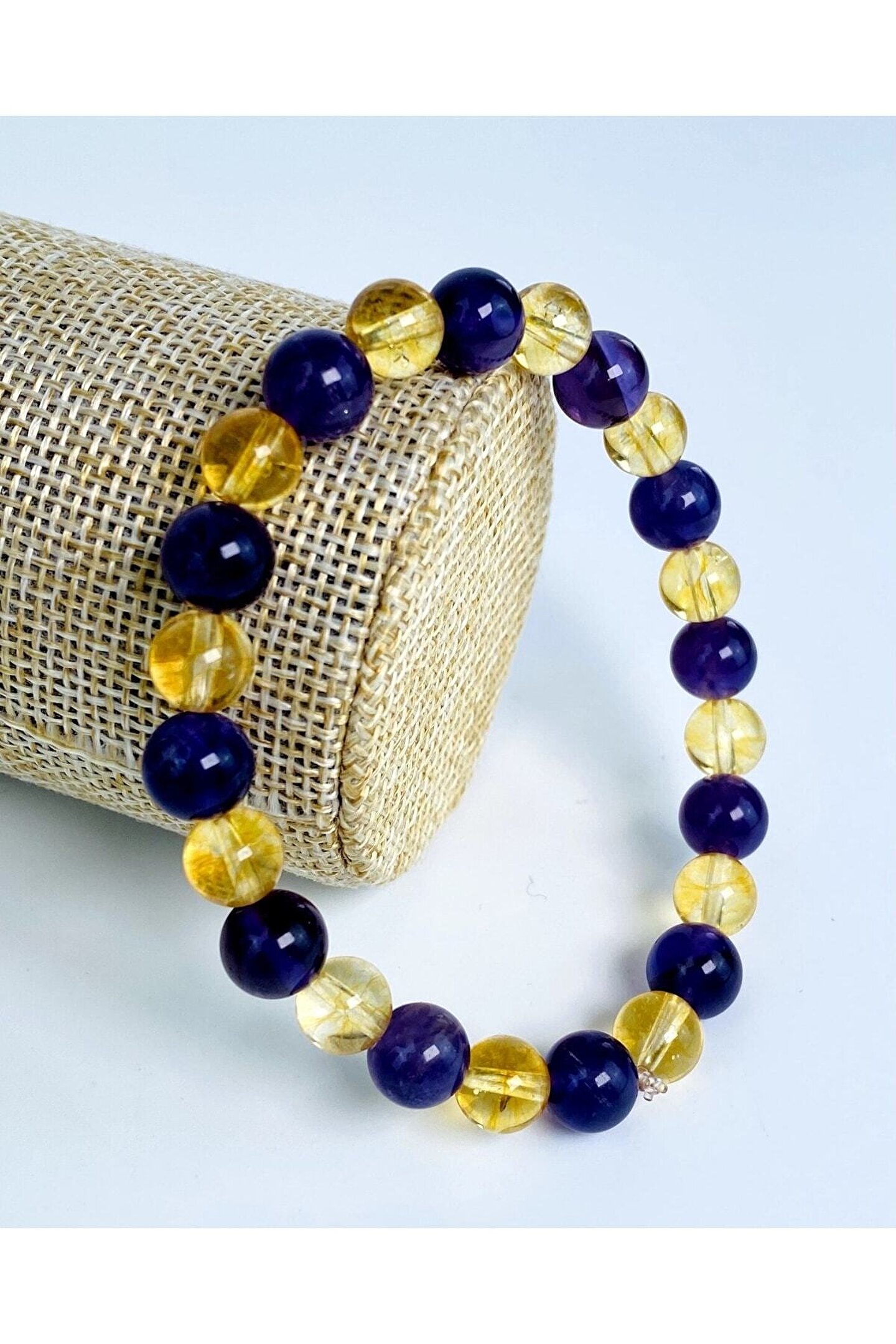 - Gençlerin enerjisini ve stilini yansıtan bu bileklik, 8mm kalınlığındaki sitrin ve ametist taşlarıyla dikkat çekici bir görünüm sunar; - Hem sitrin hem de ametist taşlarının eşsiz renkleri ve parlaklığı, bilekliğin her açıdan göz alıcı olmasını sağlar; - Gençlerin günlük kullanımına uygun tasarımıyla, rahatlığı ve şıklığı bir arada sunar; - Farklı renk kombinasyonları ile kişisel tarzınıza kolayca uyum sağlayarak, her kıyafetle mükemmel bir uyum yakalar;