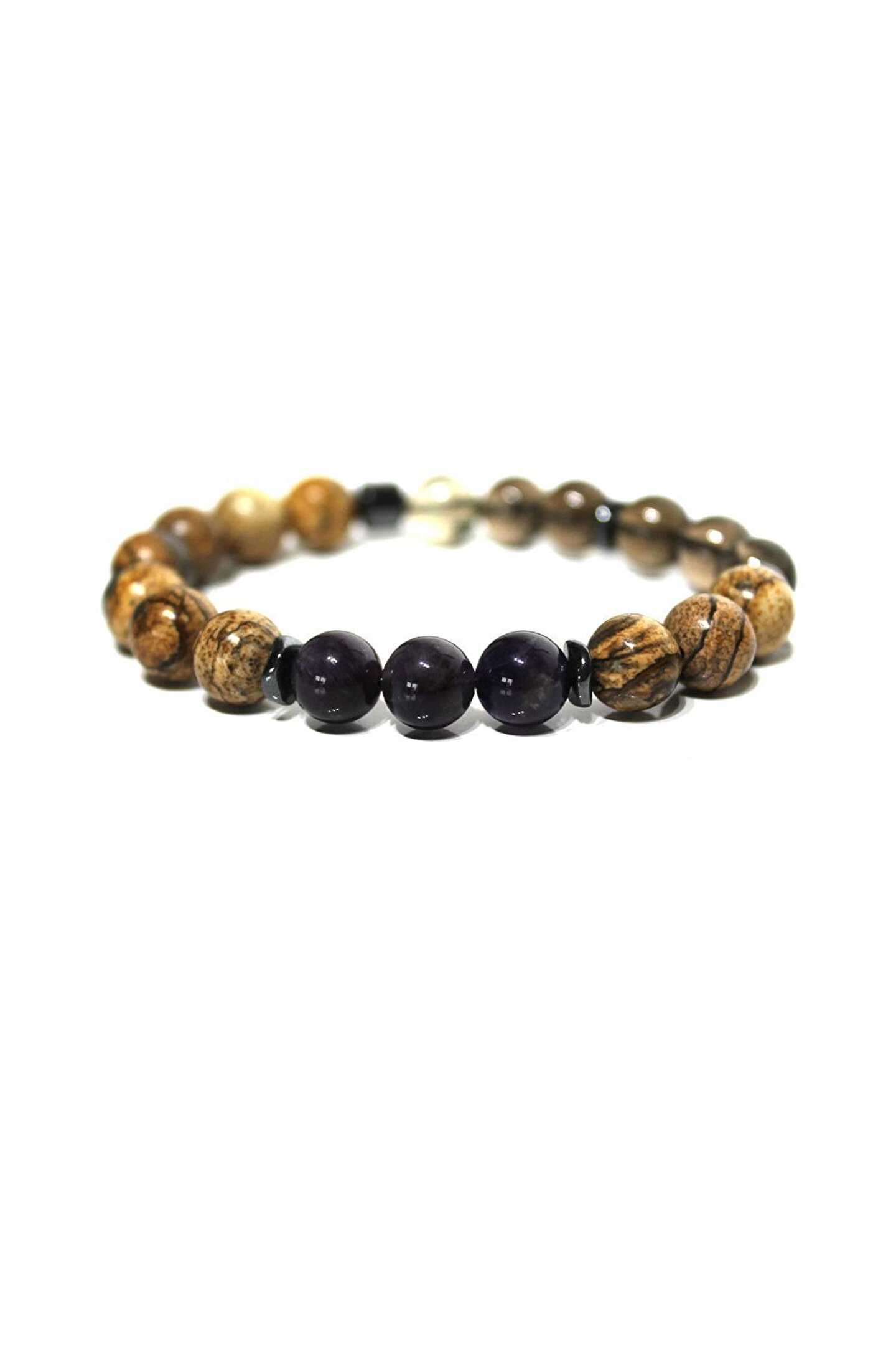 DOĞAL TAŞ CENNETİ Dumanlı Kuvars Jasper Ametist Doğaltaş Bileklik