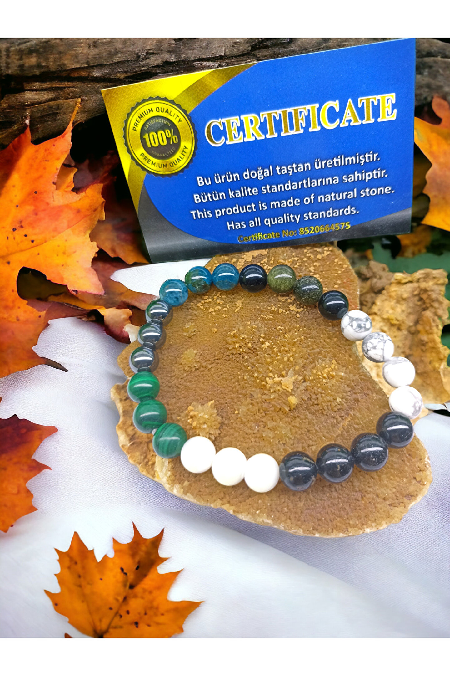 Doğal taş kullanımı sayesinde, her bileklik benzersiz ve otantik bir görünüm sunar; Sertifikalı ürün olması, kalite ve güvenilirlik açısından önemli bir avantaj sağlar; Doğal taşların doğal dokusu ve renkleri, bilekliğe zarif bir estetik katarken, cildinizle uyumlu bir his verir; El yapımı olması, her bir bilekliğin kendine özgü bir karaktere sahip olmasını sağlar;