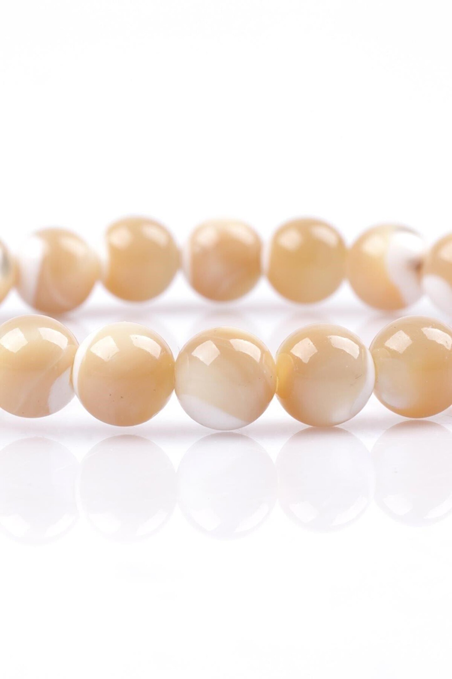 DOĞAL TAŞ CENNETİ Esmer Sedef Doğal Taş Bileklik 8 Mm Küre Kesim