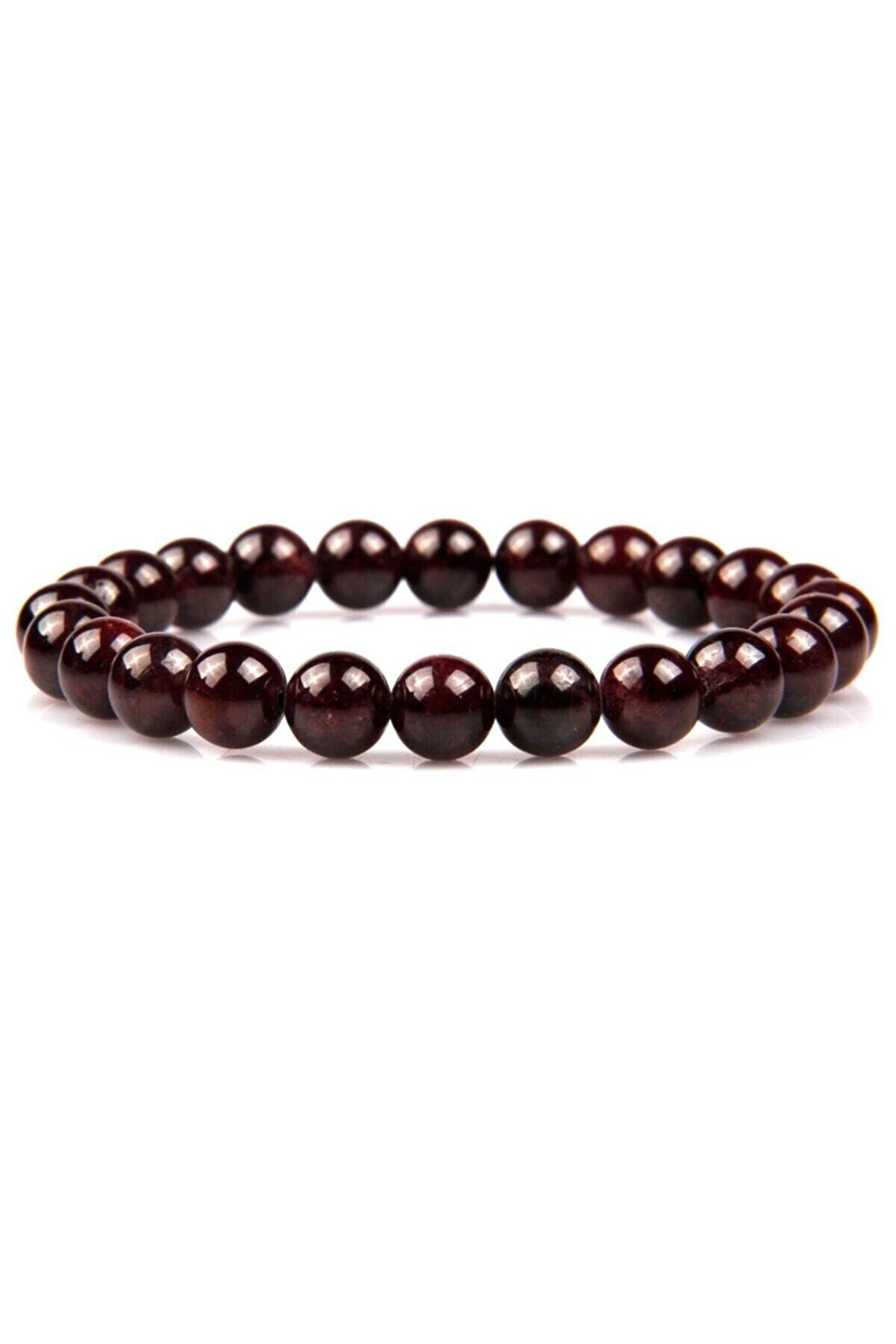 DOĞAL TAŞ CENNETİ Garnet - Lal Doğal Taş Bileklik 8 Mm Küre Kesim