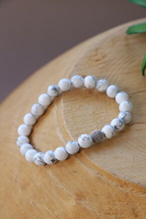 Doğal taş kullanımı sayesinde her bileklik benzersiz ve otantik bir görünüm sunar; Taş cinsi olarak seçilen havlit taşı, bilekliğe zarif bir parlaklık ve estetik bir dokunuş katar; Doğal materyallerin tercih edilmesiyle hem çevre dostu hem de şık bir aksesuar deneyimi yaşatır;