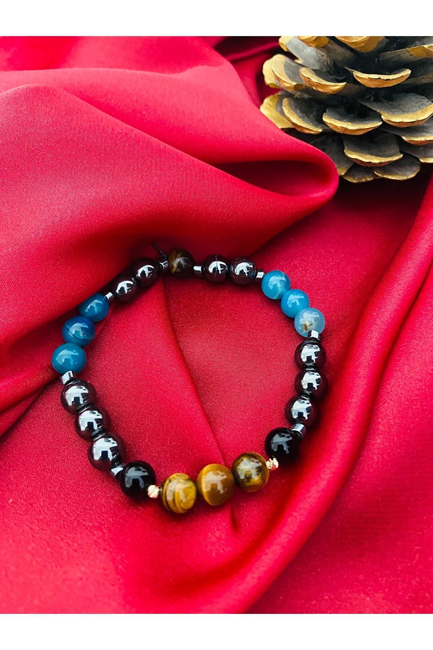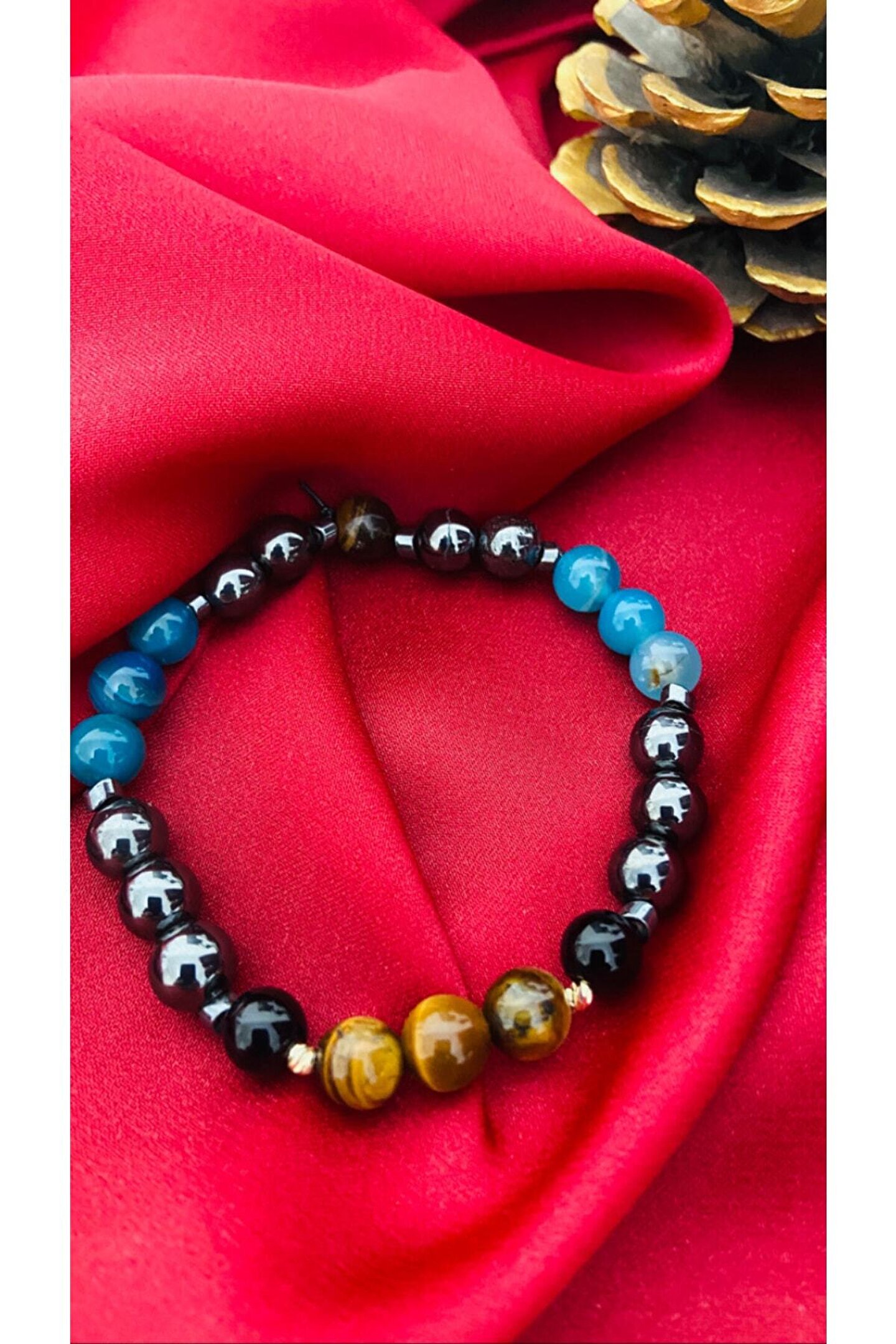 İyi şans Bileklik & Kabus& Huzursuzluk&Kronikleşmiş Sorunlar&Nazar Korunma Hematit Akik Kaplangözü Oniks Taşlarının biraradaki eşsiz keyifli dizilimi kişiye ruhani olarak iyi gelmektedir.; ; Tüm toksisite olmuş enerji ve toksinlerin atılmasına yardımcı olur, nötralize eder, bedeni ve zihni arındırır.; ; · Kalp ve karın kök mide alın sakral çakralarını açar.; ; Kişisel gelişim için en ideal taştır.; ; Sevinç, neşe ve mutluluk gibi duyguların kişiye akmasını yardımcı olur.; ; Enerjinizi arttırır ve yaratıcılığınızı harekete geçirir.; ; Bilgileri kolayca anlamaya ve kavramaya yardımcı olur.; ; Denge ve pozitif düşünceyle birlikte enerji artırma açısından etkili bir taştır.; ; Sosyalleşmeyi veya sosyal ortama uyum sağlamayı özgüven duygusunu kolaylaştırır.; ; beden zihin dengesini sağlayan bir taştır.; ; Kişiye olumlu düşünme iyimserlik duygusu verir.; ; Aşırı kaygılanmaları önler.; ; Olumsuz kalıpları serbest bırakmaya ve aşk ve sevinci hayatınıza davet etmeye yardımcı olur.; ; Sıkça tekrarlayan olumsuz yaşam döngüsünden çıkmayı kolaylaştırır… Esnek misinalı model Topraklı kutuda topraklanarak iletilmektedir Bileklik size gelmeden topraklanarak enerjisini şarj etmektedir.; ; Taşıma esnasında kişilerin enerjisinden etkilenmeden doğrudan size ulaşmış olmaktadır.; ; Doğrudan kullanıma uygundur Kullanma kılavuzu ve sertifikalı olarak iletilmektedir.; ; 22 taş olarak hazırlanmaktadır;