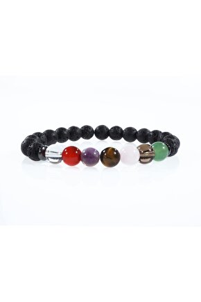 Çakra doğal taşları unisex bileklik 8mm Çakra doğal taşları unisex bileklik; Elastik özel bir ip kullanılarak el emeği ile üretilmektedir.; Kullanılan malzemeler sayesinde dirençlidir.; ; Çakra doğal taşlarının özdeşleştiği çakra: Bedenimizdeki 7 çakrada yasam enerjimiz sürekli bir akıştadır.; Çakralardaki dengesizlik, tıkanıklık, fiziksel ve ruhsal olarak hastalıklara sebep olur.; Ruhsal gelişimde çakralardaki enerji akışının sağlıklı olmasıyla bağlantılıdır.; ; ; Lav taşı bünyesindeki başlıca mineraller: Demir, çinko, magnezyum, potasyum ve kalsiyum ; Lav taşı özdeşleştiği çakra: Tüm çakralar ; ; Hematit bünyesindeki başlıca mineraller: Titanyum, demir, magnezyum ve oksijen + eser miktarda krom, manganez, silisyum, su ve toryum ; Hematit özdeşleştiği çakra: Kök (kuyruk sokumu) ;