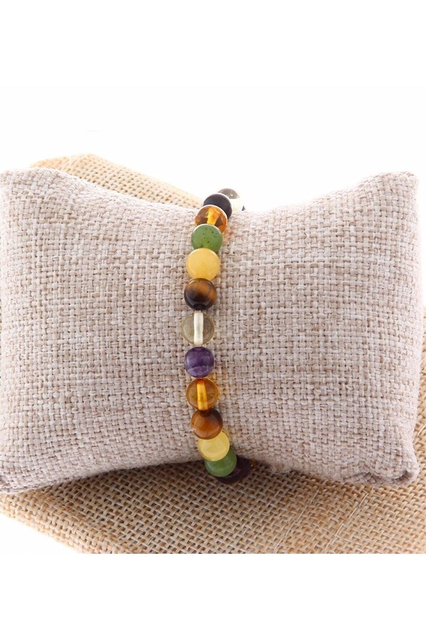DOĞAL TAŞ CENNETİ Kaplan Gözü, Kehribar, Yeşim, Ametist Doğal Taş 8mm Bileklik