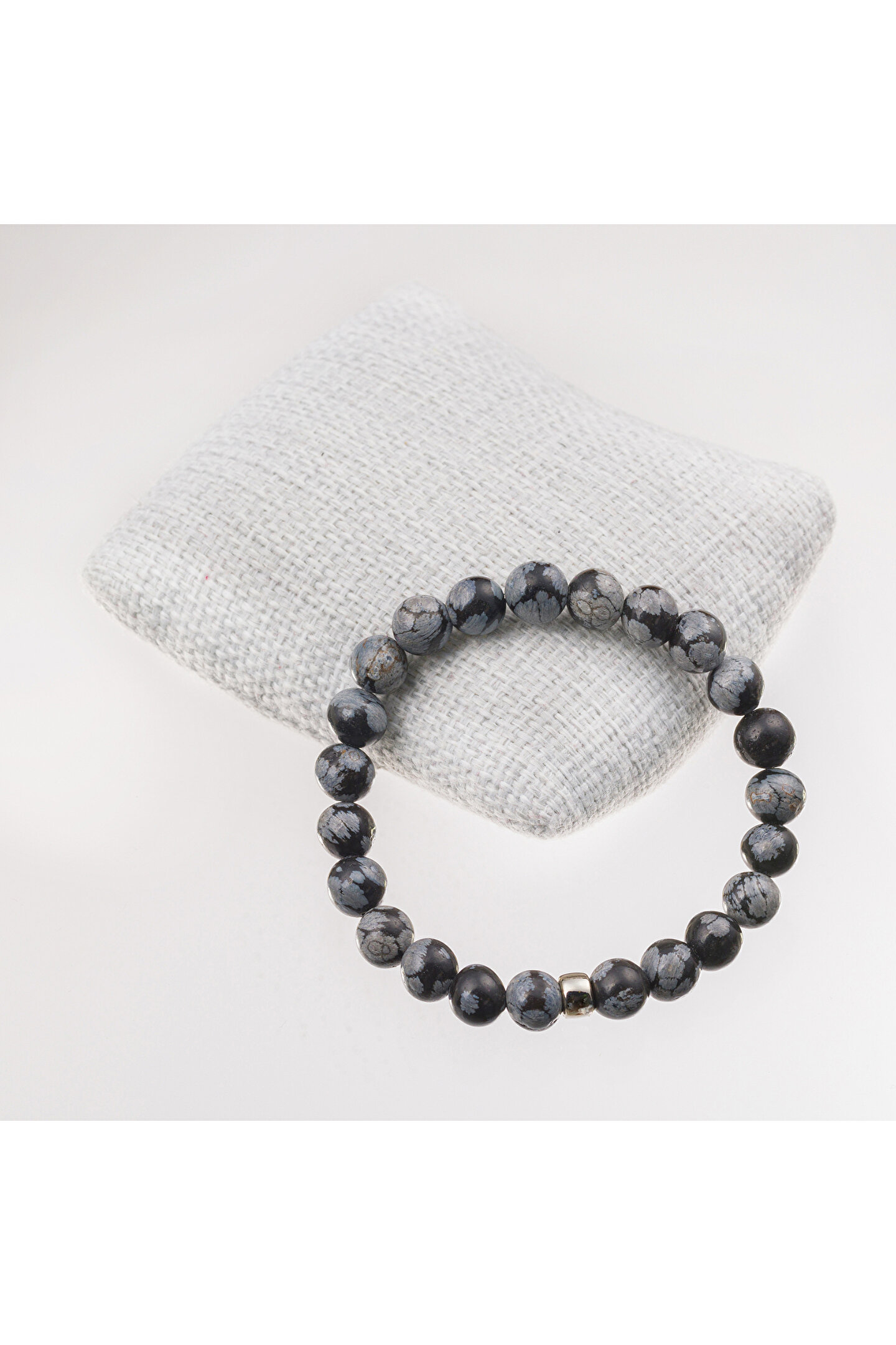 Doğal obsidyen taşı kullanılarak üretilmiş, şık ve zarif bir aksesuar; 8 mm boyutundaki bileklik, klasik ve modern tarzları bir arada sunar; Göz alıcı siyah rengiyle dikkat çeken bu bileklik, her türlü kıyafetle uyum sağlar; Doğal taş materyali sayesinde her bilek boyutuna rahatça uyum sağlar ve konforlu bir kullanım sunar; El yapımı olmasıyla öne çıkan bu bileklik, benzersiz ve özgün bir hediye seçeneği olarak da değerlendirilebilir;