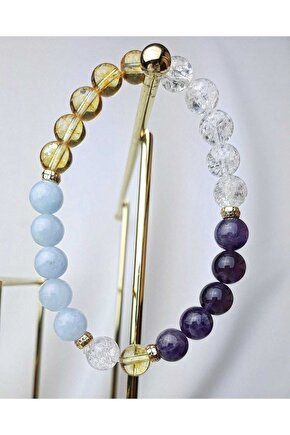 DOĞAL TAŞ CENNETİ Koç Burcu Doğal Taş Bileklik Akuamarin , Necef, Sitrin, Ametist