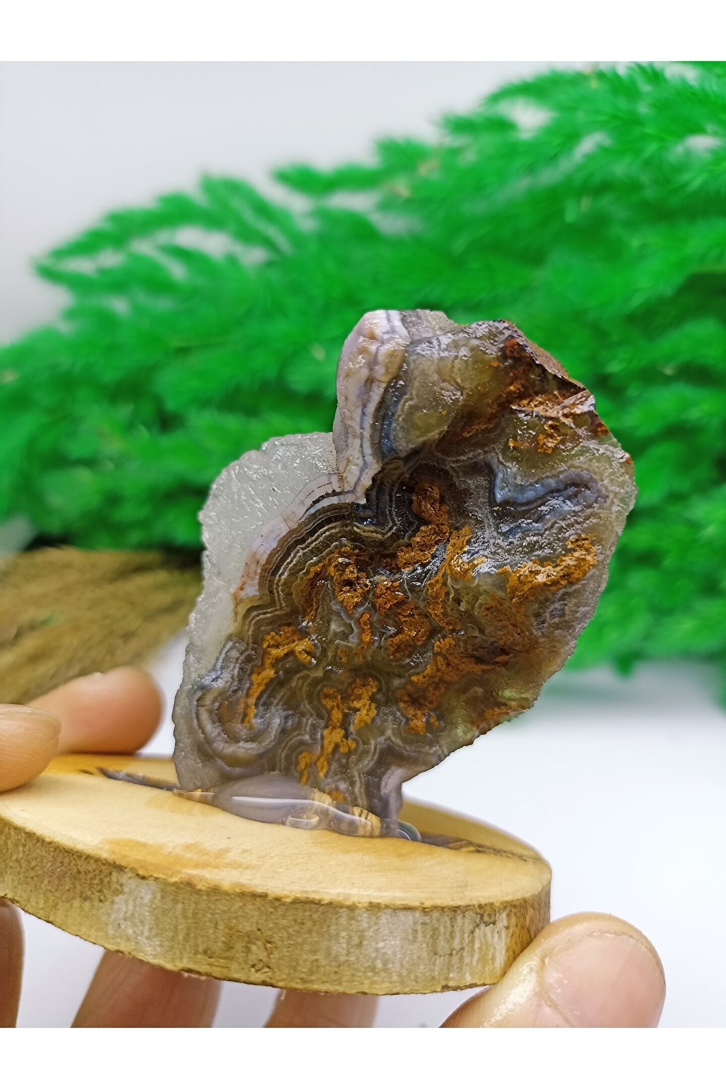DOĞAL TAŞ CENNETİ Kuvars Oluşumlu Madagaskar Akik Taşı Standlı Doğal Taş (sertifikalı)