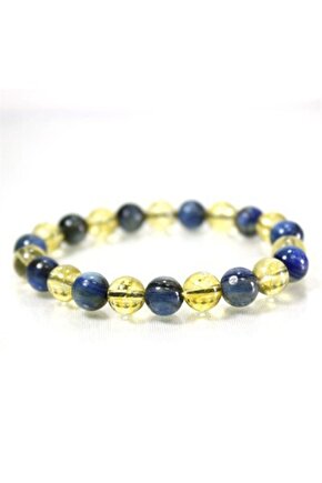 Doğal taş kullanımı sayesinde her bileklik benzersiz ve otantik bir görünüm sunar; Kyanit ve sitrin gibi değerli taşların birleşimi, bilekliğe zarif bir parlaklık ve estetik bir dokunuş katar; Doğal taş bileklik, hem günlük kullanım hem de özel günler için ideal bir aksesuar seçeneği olarak öne çıkar; El yapımı olması, her bir bilekliğin kendine özgü bir karaktere sahip olmasını sağlar ve kişisel tarzınıza özel bir dokunuş ekler;