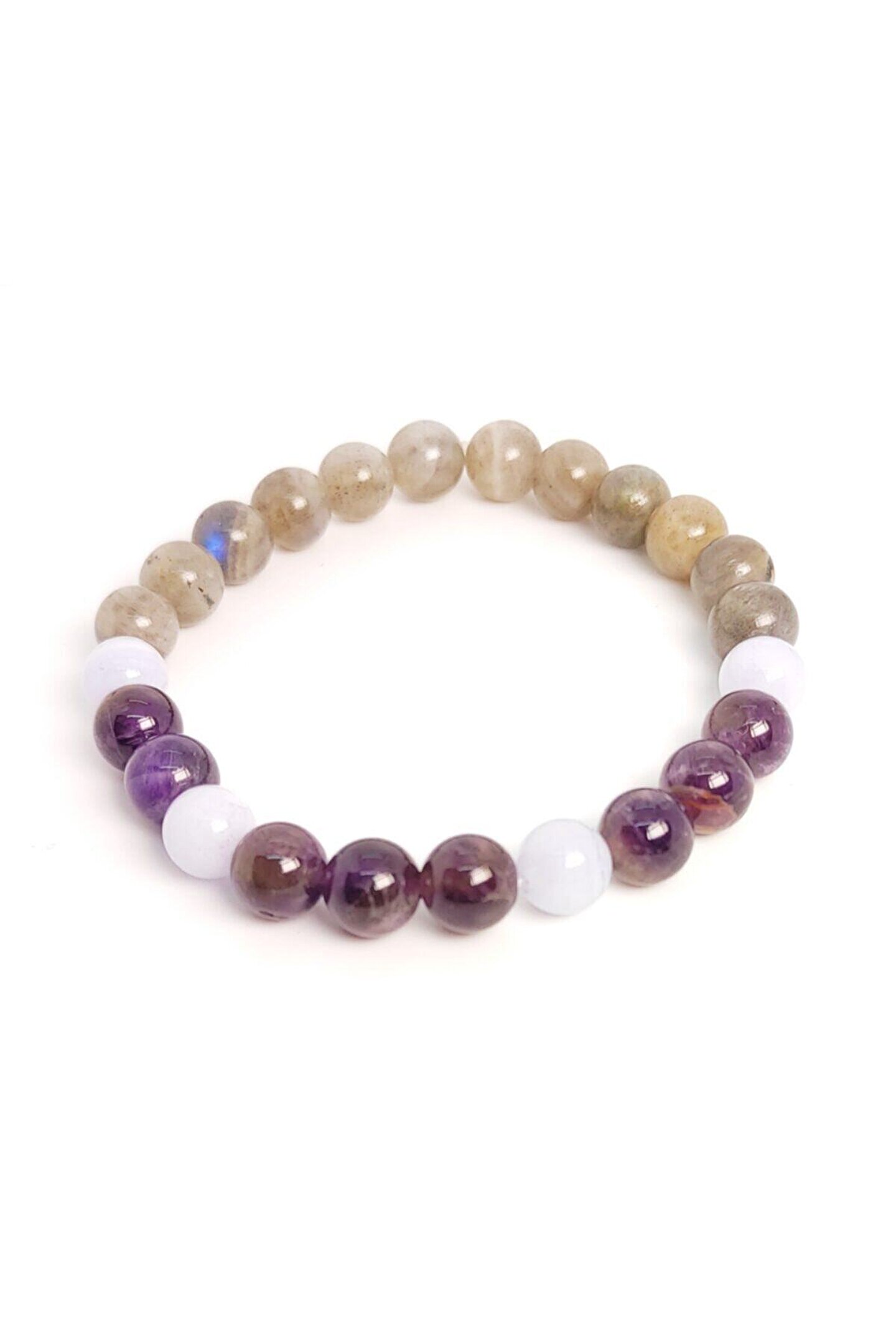 - Doğal taş kullanımı, her bir bilekliğin benzersiz ve otantik bir görünüm kazanmasını sağlar; - Labradorit ametist ve dentrit akik kombinasyonu, hem şıklığı hem de doğallığı bir arada sunar; - Bu bileklik, günlük kullanım için idealdir ve her türlü kıyafetle kolayca uyum sağlar; - Bileklik, enerji taşı olarak bilinen bu iki değerli taşın faydalarını bir araya getirir;