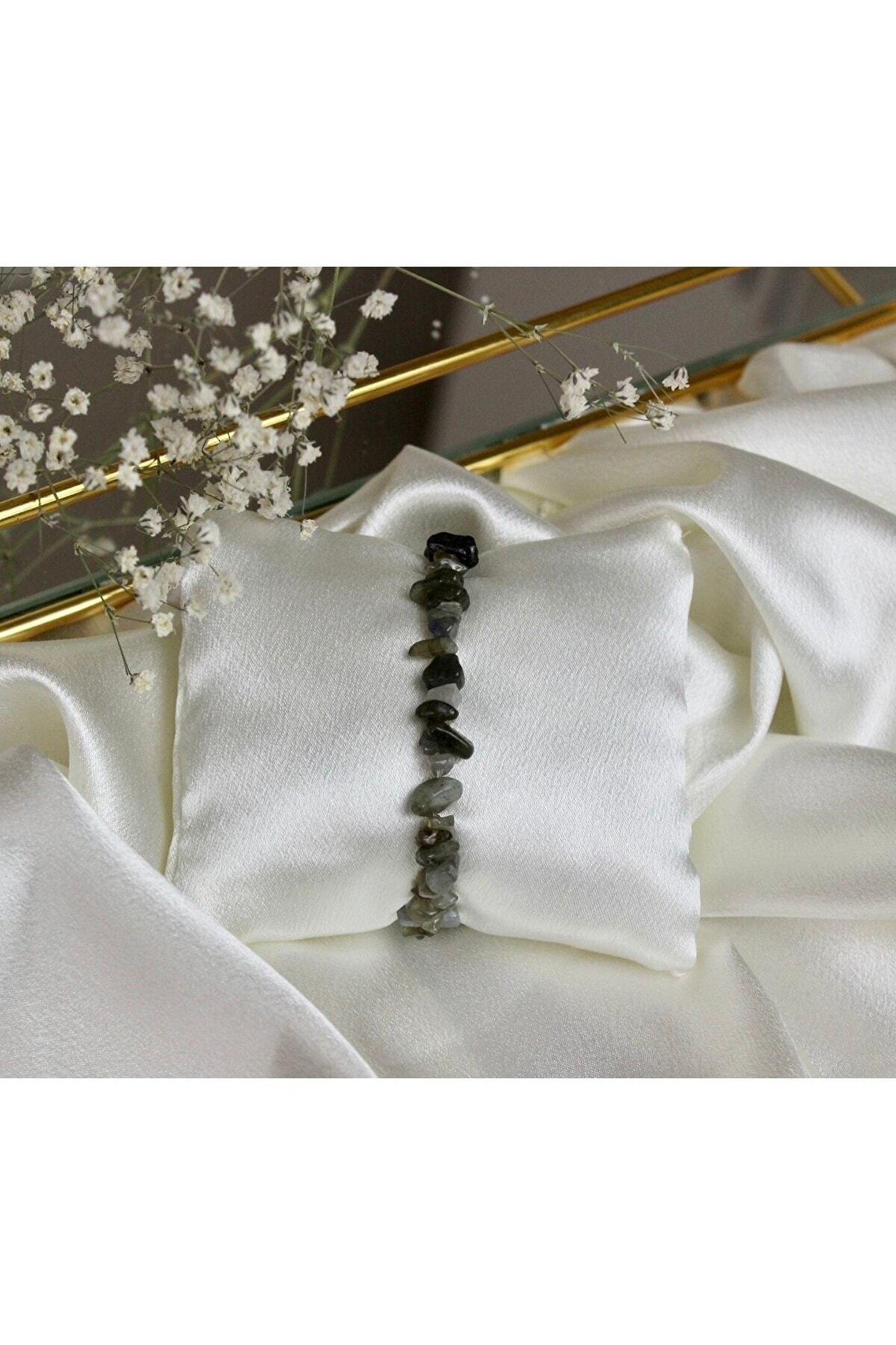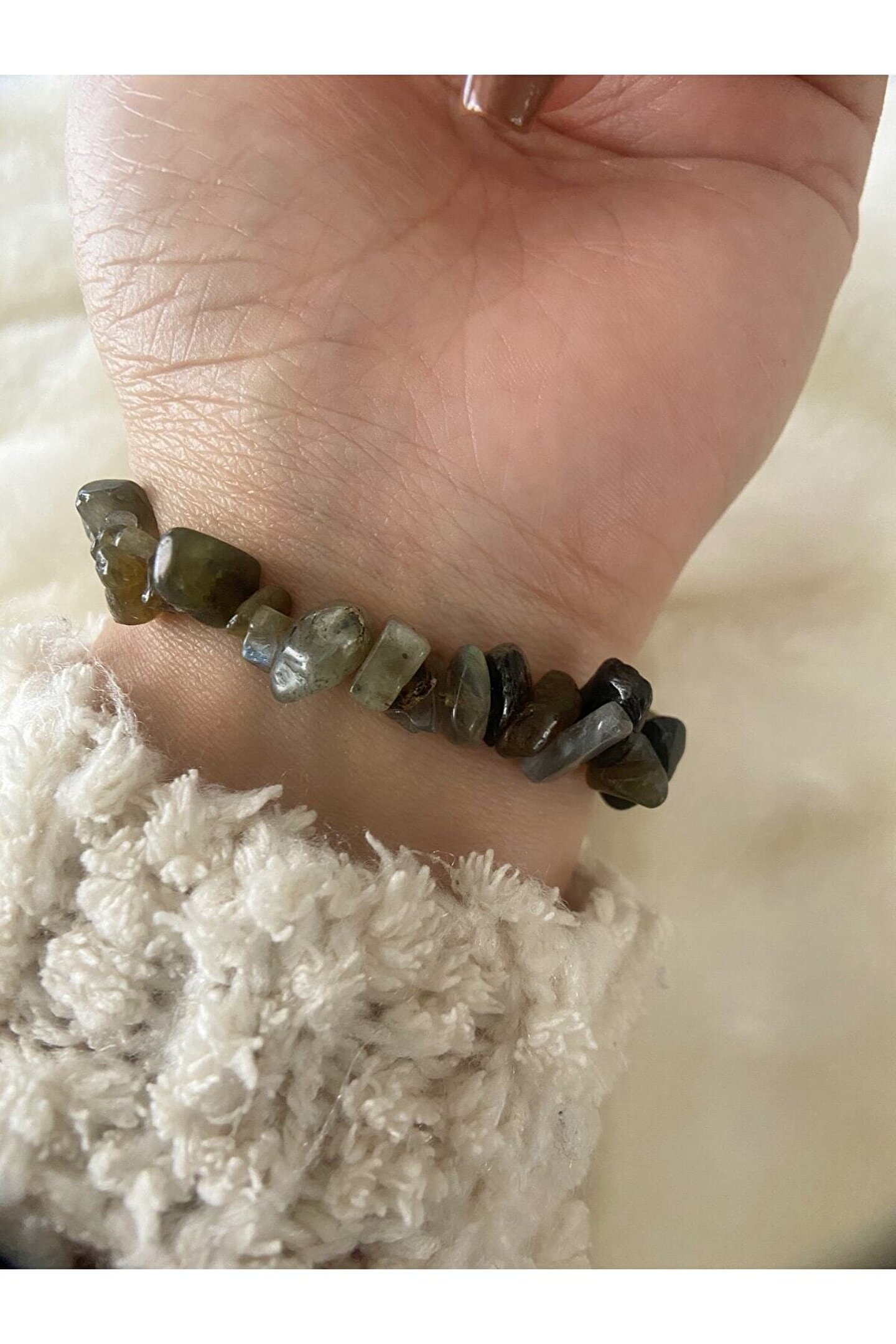 - Doğal Labradorit taşı ile tasarlanmış, şıklığı ve zarafeti bir arada sunan bileklik; - El yapımı ve özgün tasarımıyla her kıyafetle uyum sağlayacak bir aksesuar; - Renkli ve desenli yapısıyla göz alıcı bir görünüm kazandırır; - Günlük kullanım için ideal, rahat ve dayanıklı yapısıyla dikkat çeker; - Özel günlerde veya günlük kullanımda tercih edilebilecek çok yönlü bir aksesuar;