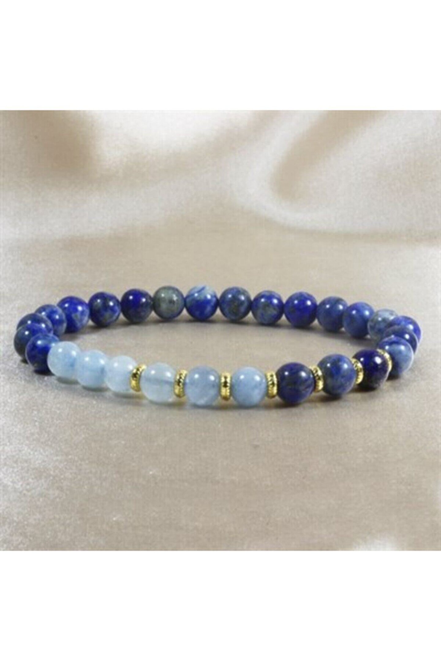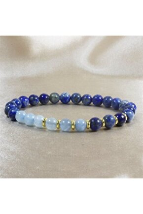 DOĞAL TAŞ CENNETİ Lapis Akuamarin Altın Kaplama Bileklik