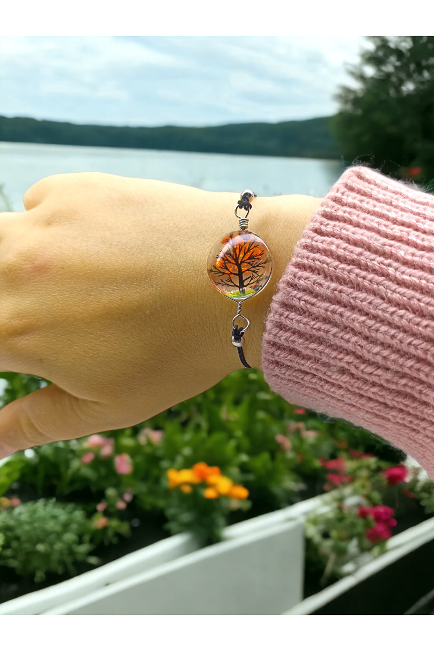 DOĞAL TAŞ CENNETİ Murano El Yapımı Hayat Ağacı Makrome Bileklik