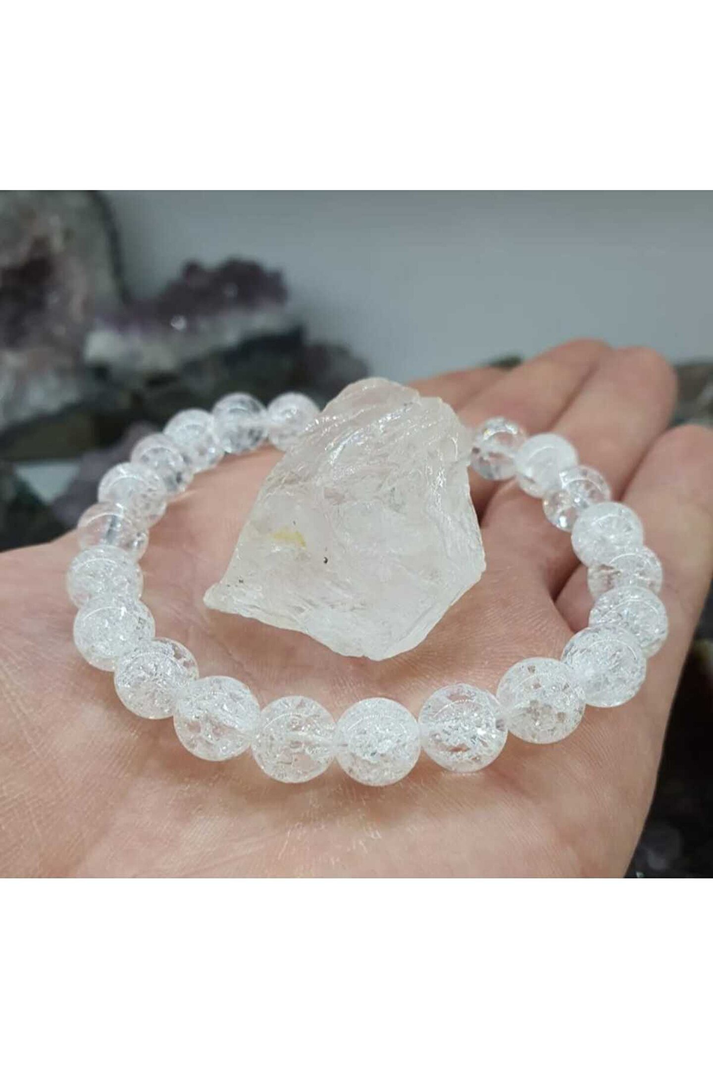 - Doğal taş kullanımı sayesinde her bileklik benzersiz ve özgün bir görünüm sunar; - Necef doğal taşının şık ve zarif tasarımı, günlük kullanımda bileklerinize doğal bir güzellik katar; - 8mm boyutundaki bu bileklik, hem rahatlık hem de şıklığı bir arada sunar; - Kristal kuvars ham taş detayı ile bilekliğinize ekstra bir parlaklık ve estetik bir dokunuş ekler;